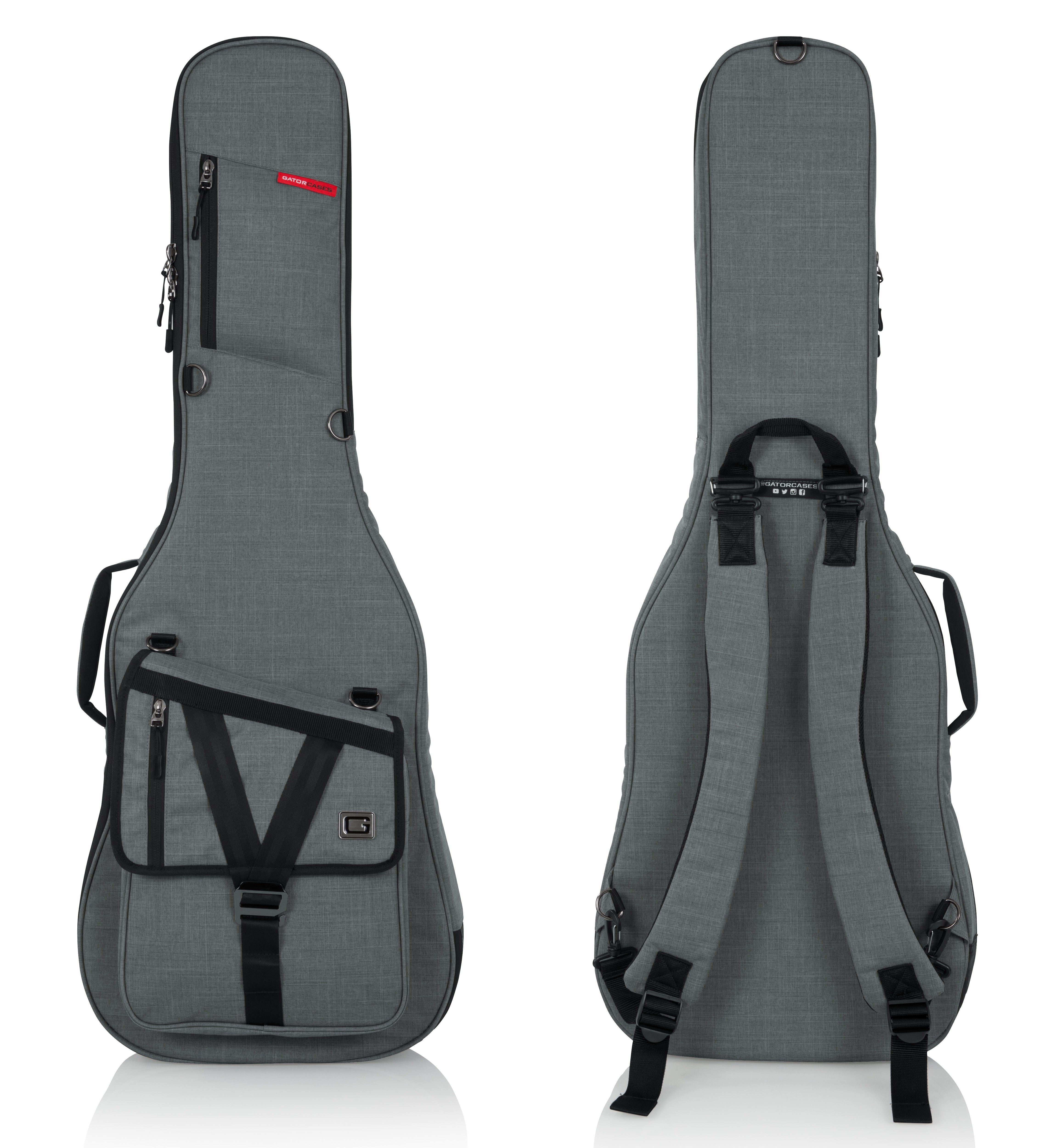 The Gator GT-ELECTRIC-GRY Transit Series Electric Guitar Gig Bag with light grey exterior is designed like a case providing superior protection without the added weight. The frame of the bag is designed with rigid materials and the interior is padded to protect the instrument. The blended fabric exterior resists weather and the rubber padding on the bottom of the case will prevent the occasional spill from ruining the bottom of the instrument.