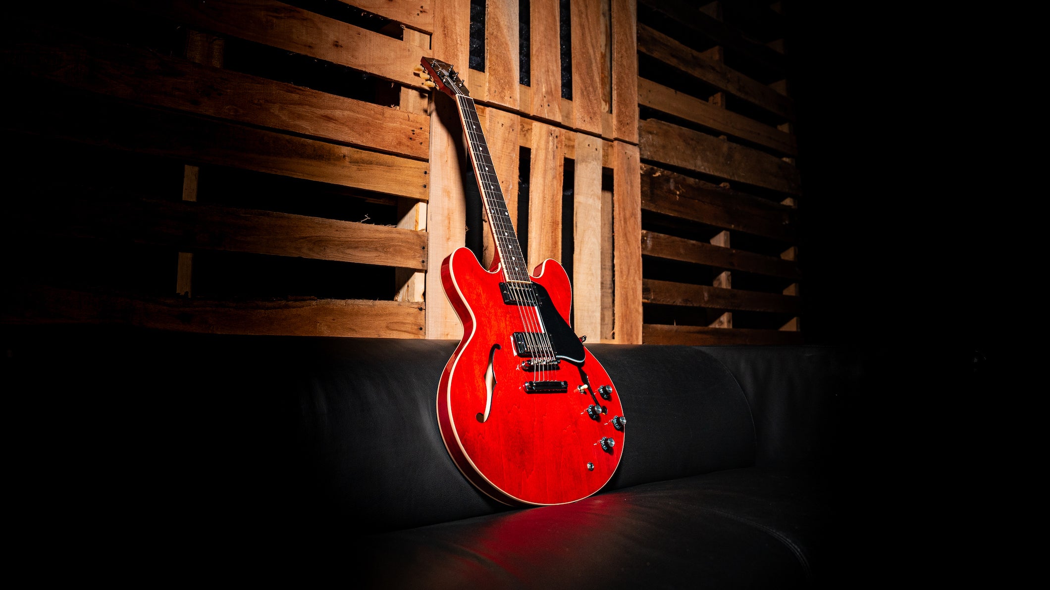 Experience A Timeless Tradition With The Gibson ES-335 Semi Hollow Body Guitar In Sixties Cherry