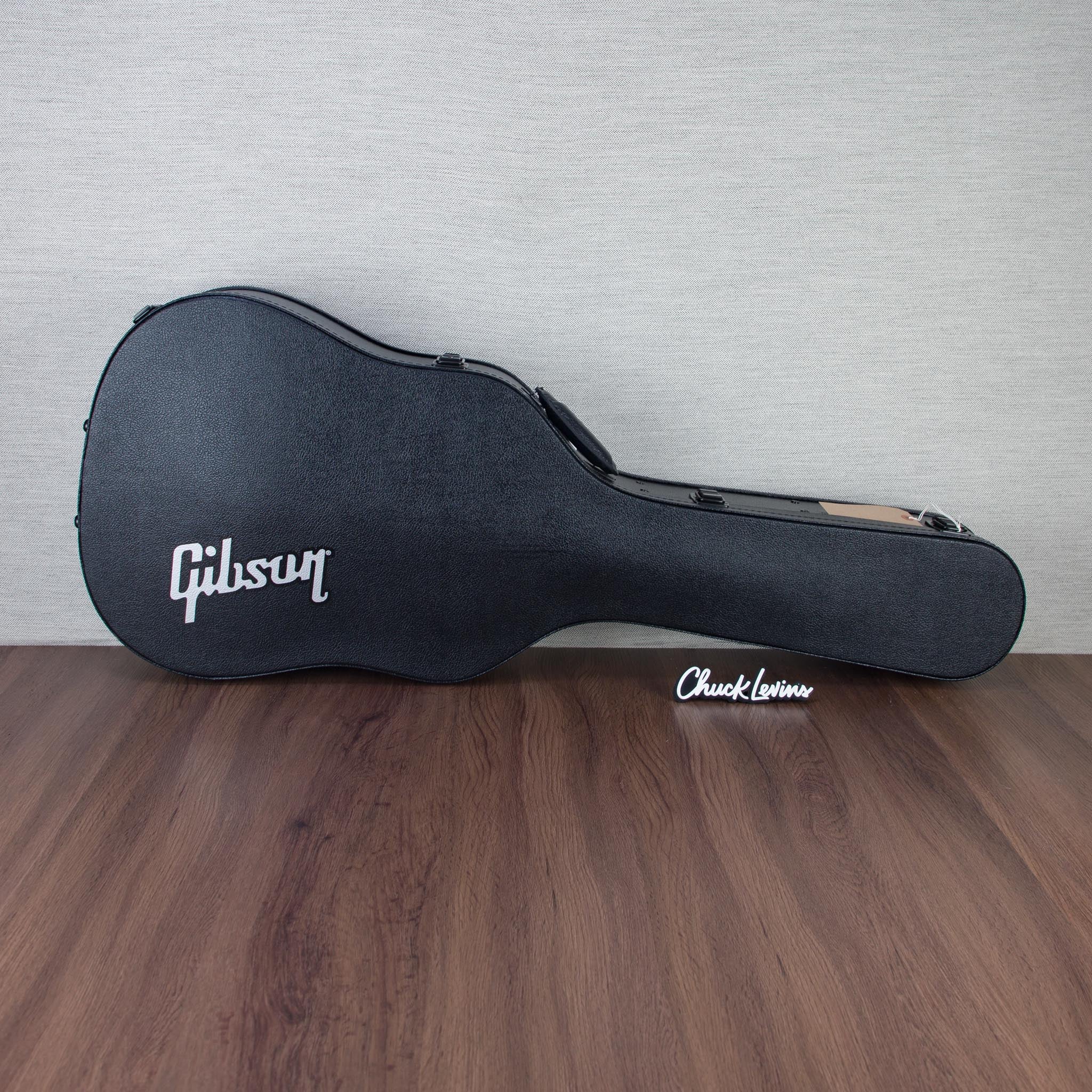 The J-45™ is the best-selling Gibson acoustic guitar model of all time. Nicknamed "The Workhorse" and first introduced in 1942, this iconic acoustic has become the cornerstone of its round-shoulder, dreadnought line. World-renowned for its full, balanced expression, warm bass, and excellent projection, the J-45 has been refined to carry this legacy to new heights. The Gibson J-45 Standard delivers a sound with incredible dynamic range, warm mids, and a tight, punchy bass due in part to its round-shoulder body and sides that are made from solid mahogany and its solid Sitka spruce top; it's a classic tonewood recipe that is ideal for all musical styles. The mahogany neck has a comfortable and fast-playing SlimTaper™ profile and is topped with a rosewood fretboard that is outfitted with 20 standard frets and adorned with simple mother-of-pearl dot inlays. The neck is fitted to the body with a compound dovetail joint, ensuring outstanding tonal transfer and sustain. The traditional rosewood belly-up bridge is outfitted with a TUSQ® saddle and bridge pins. A low-friction TUSQ nut, along with the quality Grover® Rotomatic® tuners, ensures solid tuning stability, so you can spend more time playing and less time tuning up. The J-45 Standard is equipped with an L.R. Baggs™ VTC under-saddle pickup and active preamp, so it is stage and studio-ready from the moment you take it out of the included hardshell case.