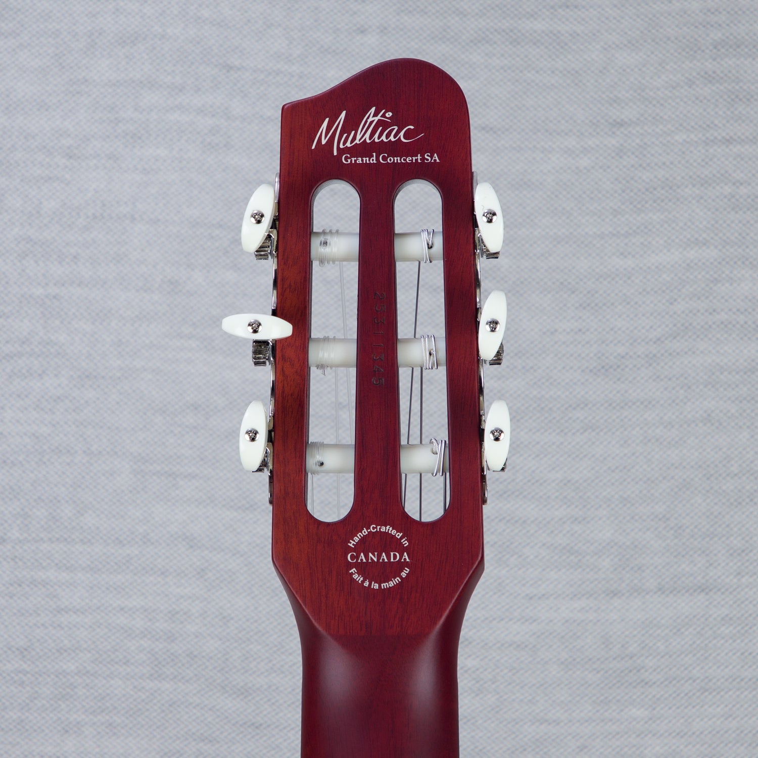 This Multiac Grand Concert SA model features pristine-sounding electronics by LR Baggs. The Multiac Grand Concert guitar's design utilizes a larger body that joins the neck at the twelfth fret, and the 2-inch nut width is slightly larger than the standard Multiac, which is more typical of the classical tradition. The result is the ultimate guitar for classical players who require an amplified sound.