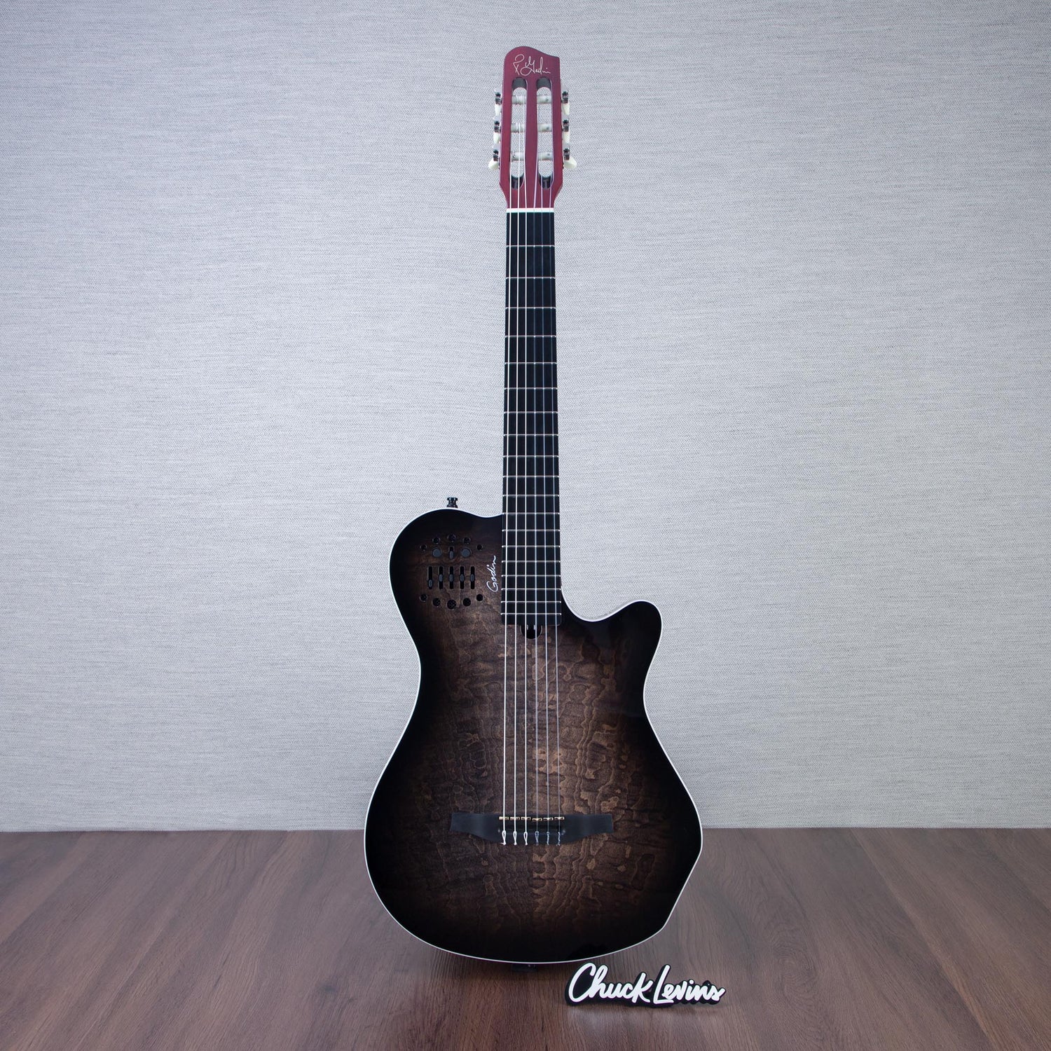 Powerful Sound and Elevated Looks - The Godin Multiac Grand Concert SA Guitar with Maple Top in Trans Black Flame Burst - CHUCKSCLUSIVE