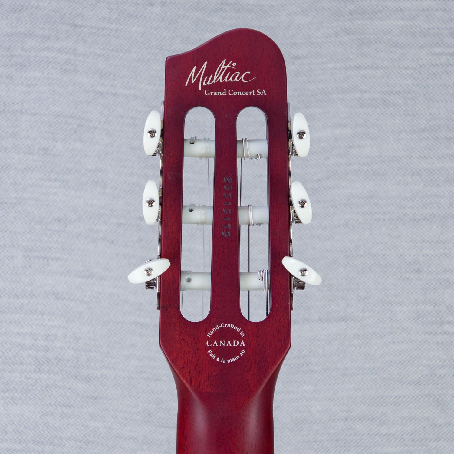 This Multiac Grand Concert SA model features pristine-sounding electronics by LR Baggs. The Multiac Grand Concert guitar's design utilizes a larger body that joins the neck at the twelfth fret, and the 2-inch nut width is slightly larger than the standard Multiac, which is more typical of the classical tradition. The result is the ultimate guitar for classical players who require an amplified sound.
