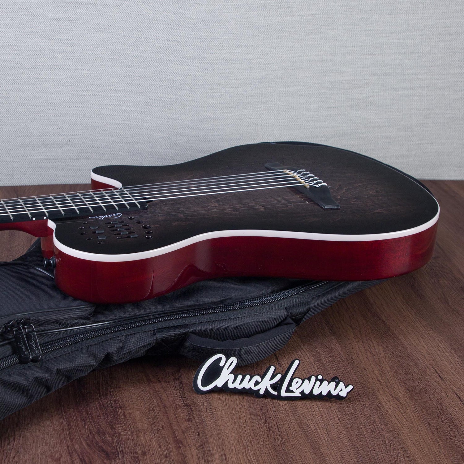 Celebrating our 65th Anniversary since we first opened our doors in 1958, we've partnered with Godin to bring you this unique CHUCKSCLUSIVE Multiac Grand Concert SA model. It adds a maple top for a brighter, more percussively powerful character, with a distinctive Trans Black Flame Burst finish that lends an elevated, luxurious appearance. It comes equipped with the Multiac’s signature LR Baggs Custom Voiced preamp system and Lyric mic, as well as 13-pin connector for synth access, and a rugged, heavily padded Godin gigbag included. Please enjoy this instrument responsibly.