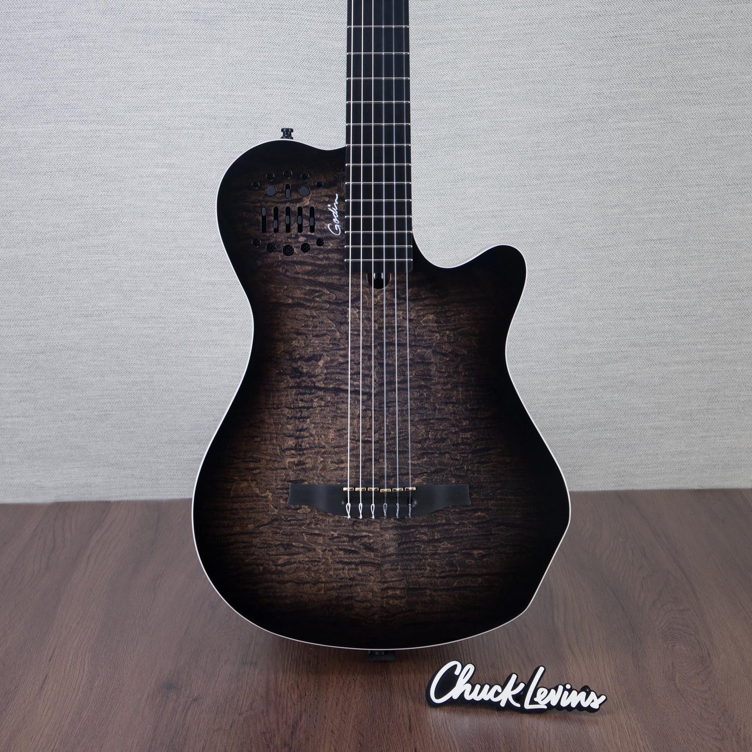 Powerful Sound and Elevated Looks - The Godin Multiac Grand Concert SA Guitar with Maple Top in Trans Black Flame Burst - CHUCKSCLUSIVE