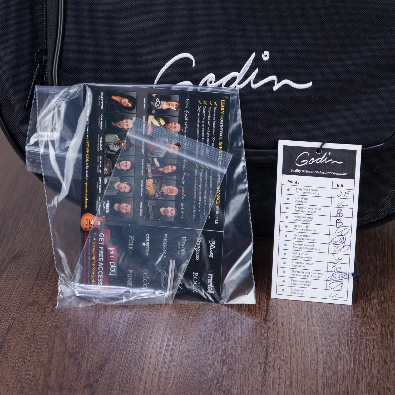 Celebrating our 65th Anniversary since we first opened our doors in 1958, we've partnered with Godin to bring you this unique CHUCKSCLUSIVE Multiac Grand Concert SA model. It adds a maple top for a brighter, more percussively powerful character, with a distinctive Trans Black Flame Burst finish that lends an elevated, luxurious appearance. It comes equipped with the Multiac’s signature LR Baggs Custom Voiced preamp system and Lyric mic, as well as 13-pin connector for synth access, and a rugged, heavily padded Godin gigbag included. Please enjoy this instrument responsibly.