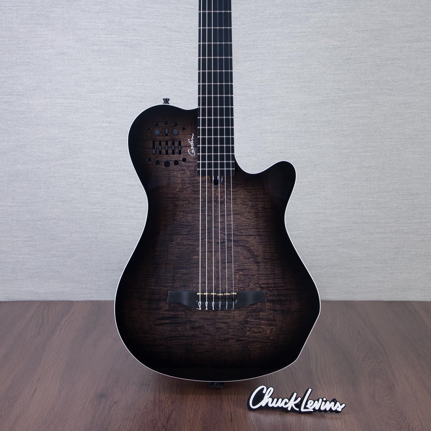 Powerful Sound and Elevated Looks - The Godin Multiac Grand Concert SA Guitar with Maple Top in Trans Black Flame Burst - CHUCKSCLUSIVE