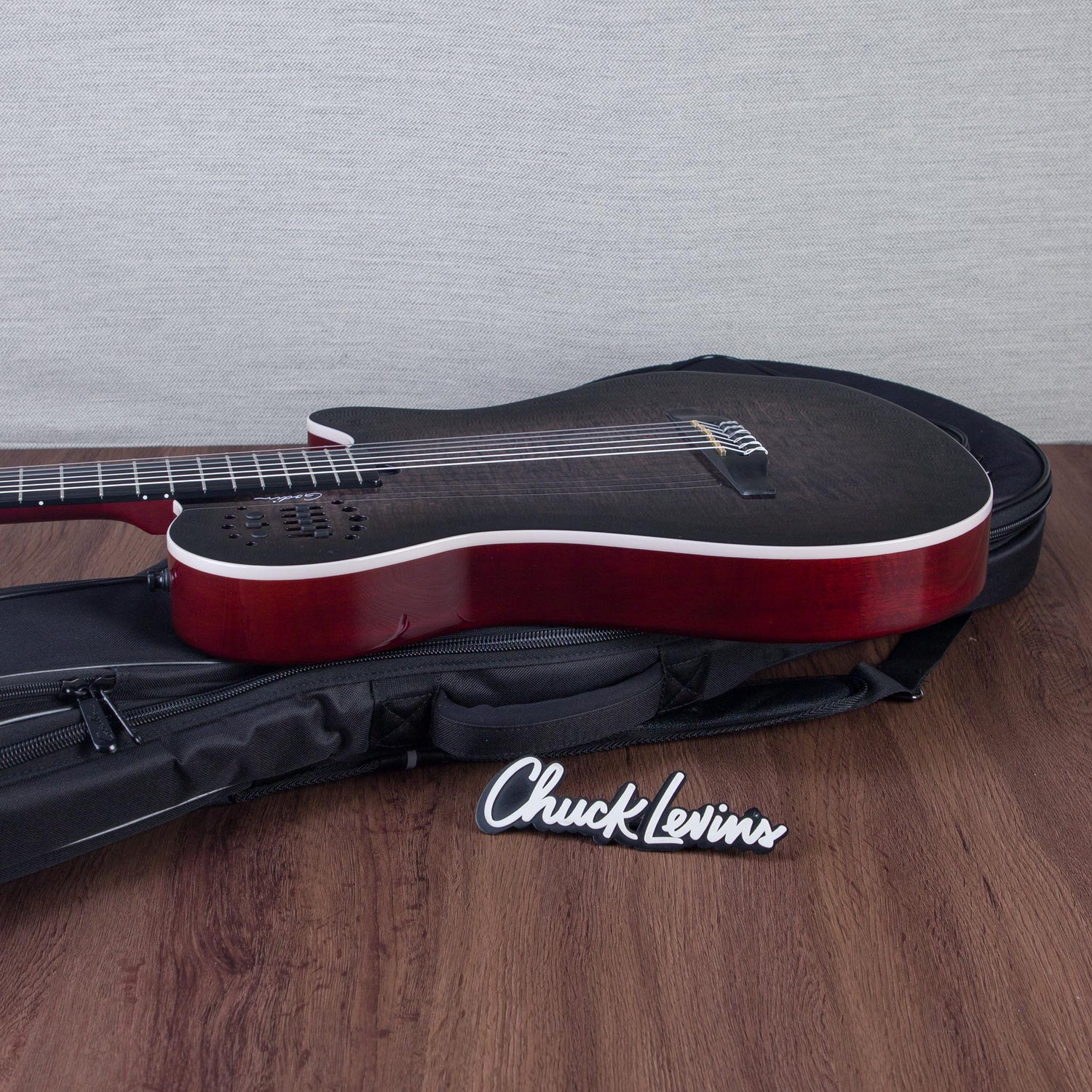 Celebrating our 65th Anniversary since we first opened our doors in 1958, we've partnered with Godin to bring you this unique CHUCKSCLUSIVE Multiac Grand Concert SA model. It adds a maple top for a brighter, more percussively powerful character, with a distinctive Trans Black Flame Burst finish that lends an elevated, luxurious appearance. It comes equipped with the Multiac’s signature LR Baggs Custom Voiced preamp system and Lyric mic, as well as 13-pin connector for synth access, and a rugged, heavily padded Godin gigbag included. Please enjoy this instrument responsibly.