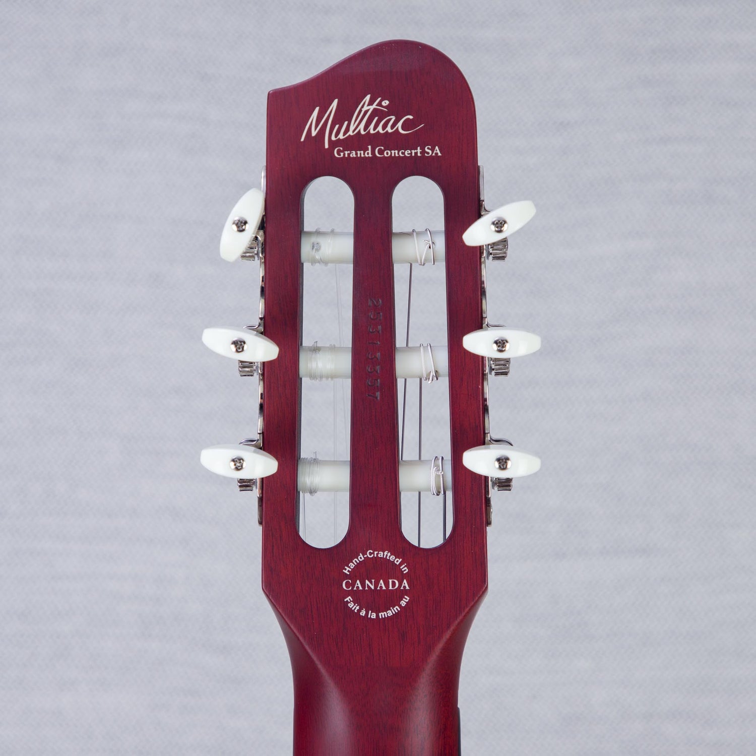 This Multiac Grand Concert SA model features pristine-sounding electronics by LR Baggs. The Multiac Grand Concert guitar's design utilizes a larger body that joins the neck at the twelfth fret, and the 2-inch nut width is slightly larger than the standard Multiac, which is more typical of the classical tradition. The result is the ultimate guitar for classical players who require an amplified sound.