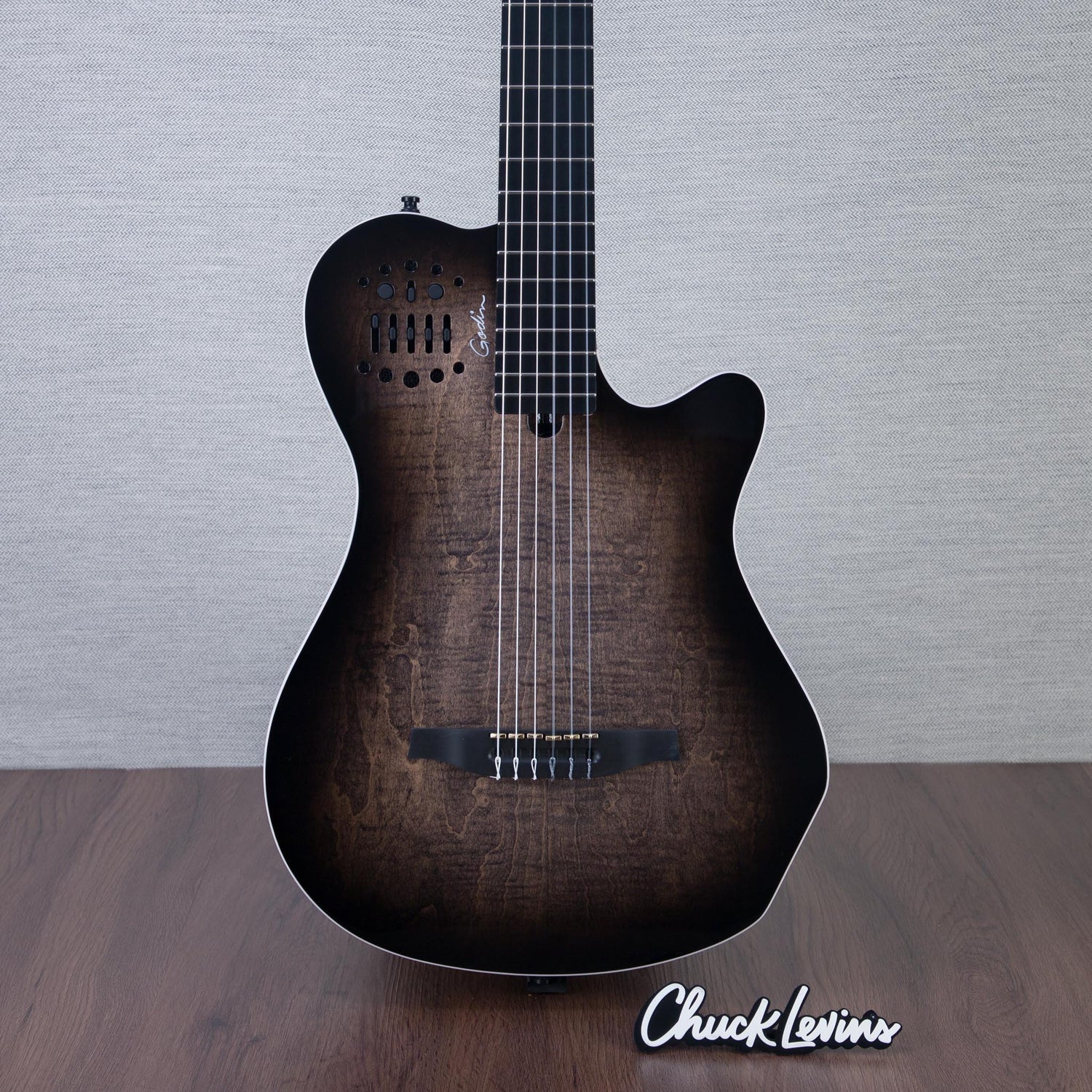 Powerful Sound and Elevated Looks - The Godin Multiac Grand Concert SA Guitar with Maple Top in Trans Black Flame Burst - CHUCKSCLUSIVE