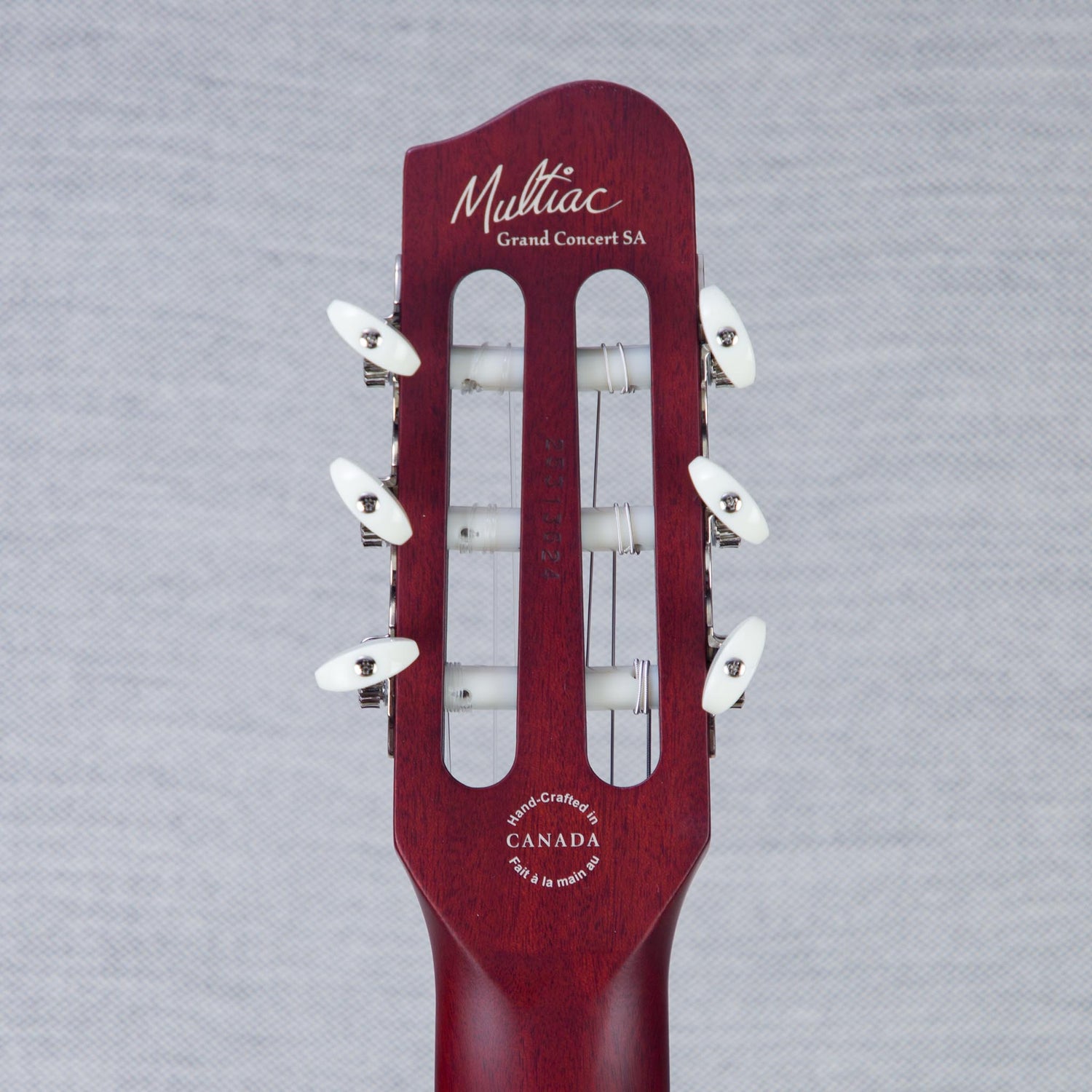 This Multiac Grand Concert SA model features pristine-sounding electronics by LR Baggs. The Multiac Grand Concert guitar's design utilizes a larger body that joins the neck at the twelfth fret, and the 2-inch nut width is slightly larger than the standard Multiac, which is more typical of the classical tradition. The result is the ultimate guitar for classical players who require an amplified sound.