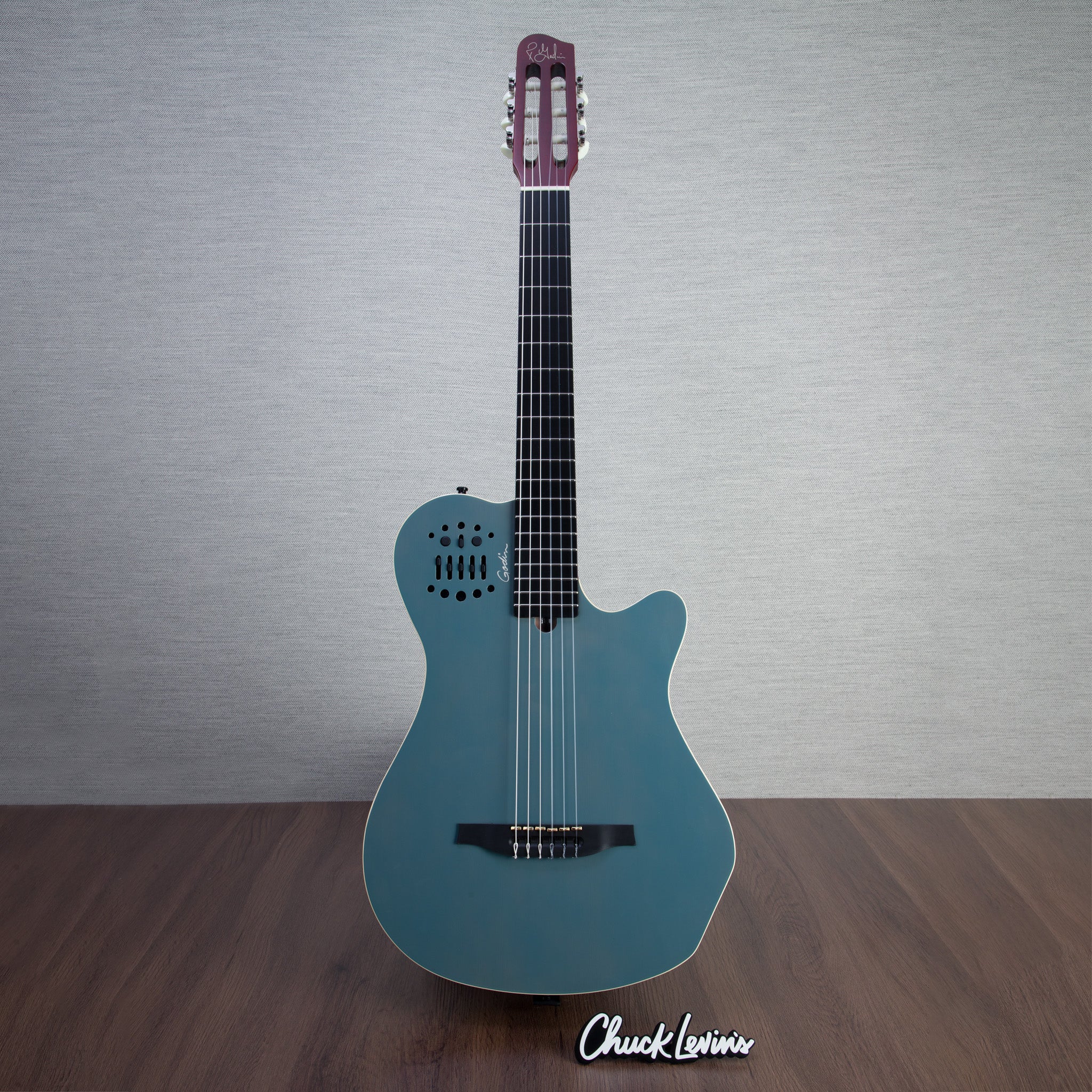 Experience Unmatched Sound and Craftsmanship - The Godin Multiac Grand Concert SA Prototype Nylon String Electric Guitar in Arctik Blue