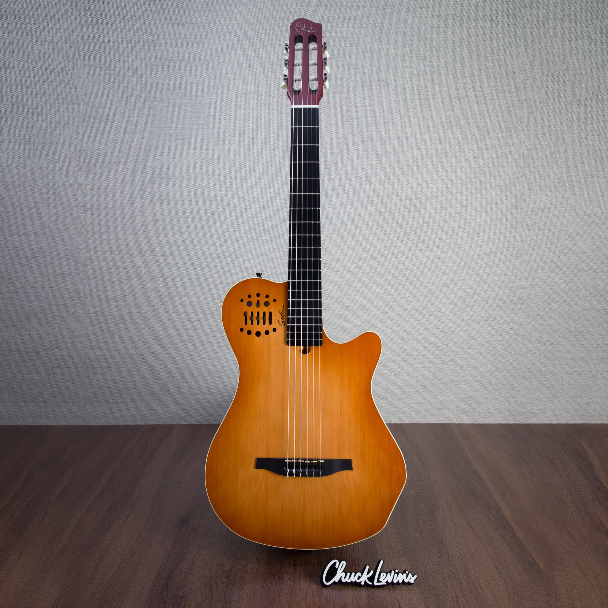 Experience Unmatched Sound and Craftsmanship - The Godin Multiac Grand Concert SA Prototype Nylon String Electric Guitar in Burst