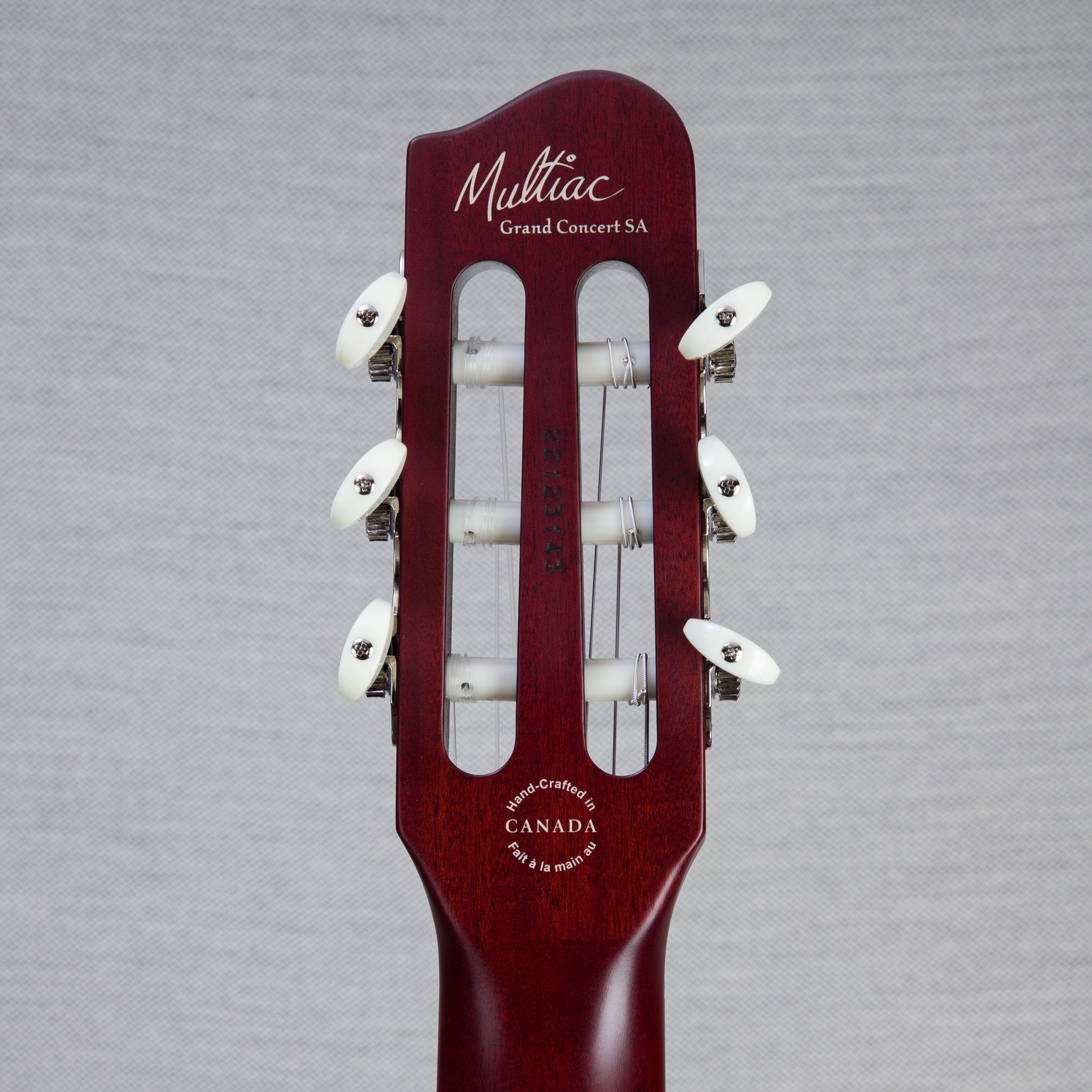The Multiac Grand Concert SA features pristine-sounding electronics by LR Baggs. Similarly to other Multiac Grand Concert models, the guitar’s design unites a larger body with a Solid Cedar top and a neck that joins the body at the twelfth fret. The 2″ nut width is slightly larger than the standard Multiac and more typical of the classical tradition. The result is the ultimate guitar for classical players who require an amplified sound.