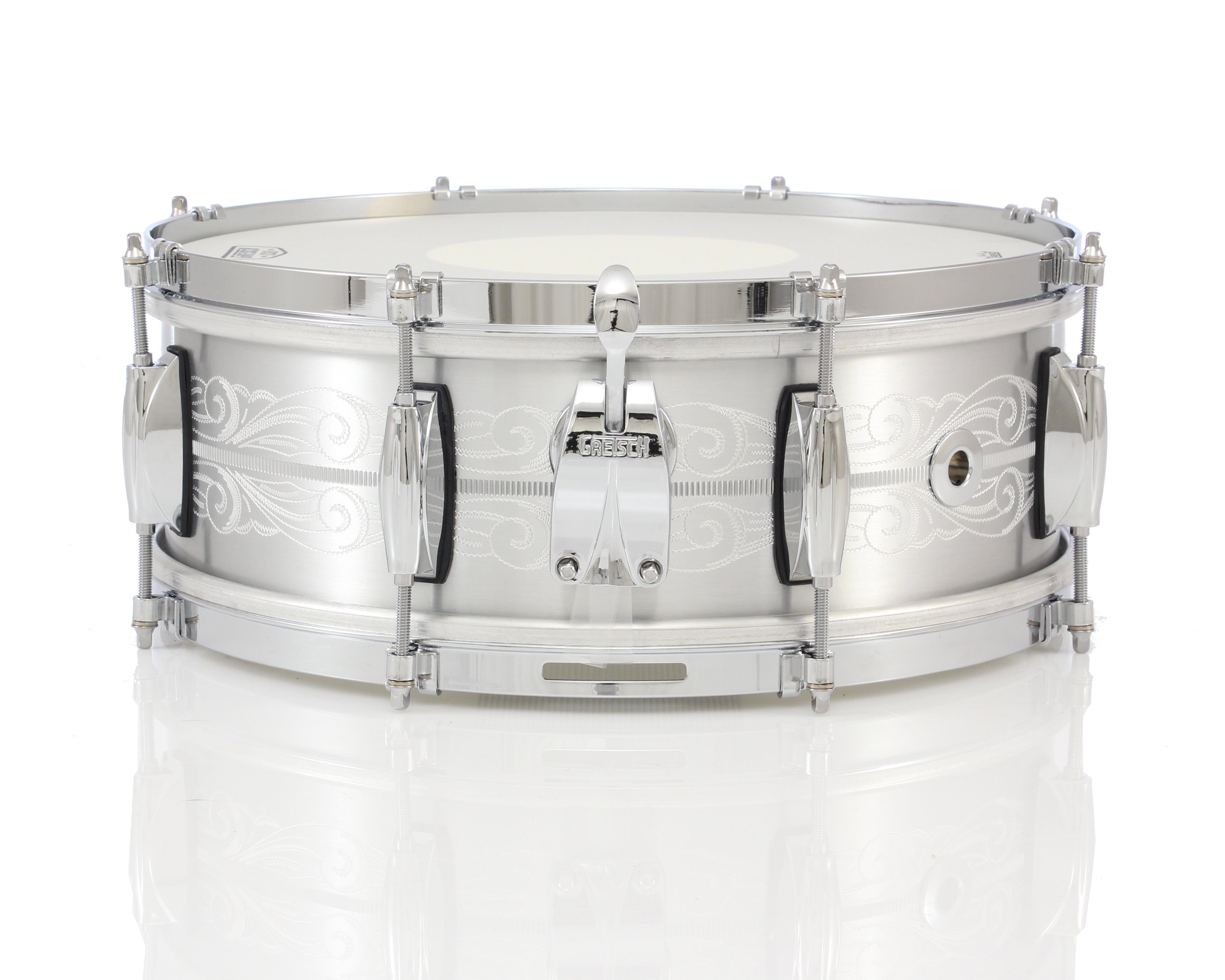Gretsch aluminum shells are known for their dry, focused attack with minimal overtones. The cast 3mm reinforced shell takes those tonal properties up a notch with greater volume potential and full tone at all dynamic levels. The shell exterior features the classic Gretsch center knurling pattern and is not plated, instead, they're treated with a lightweight clear lacquer.
