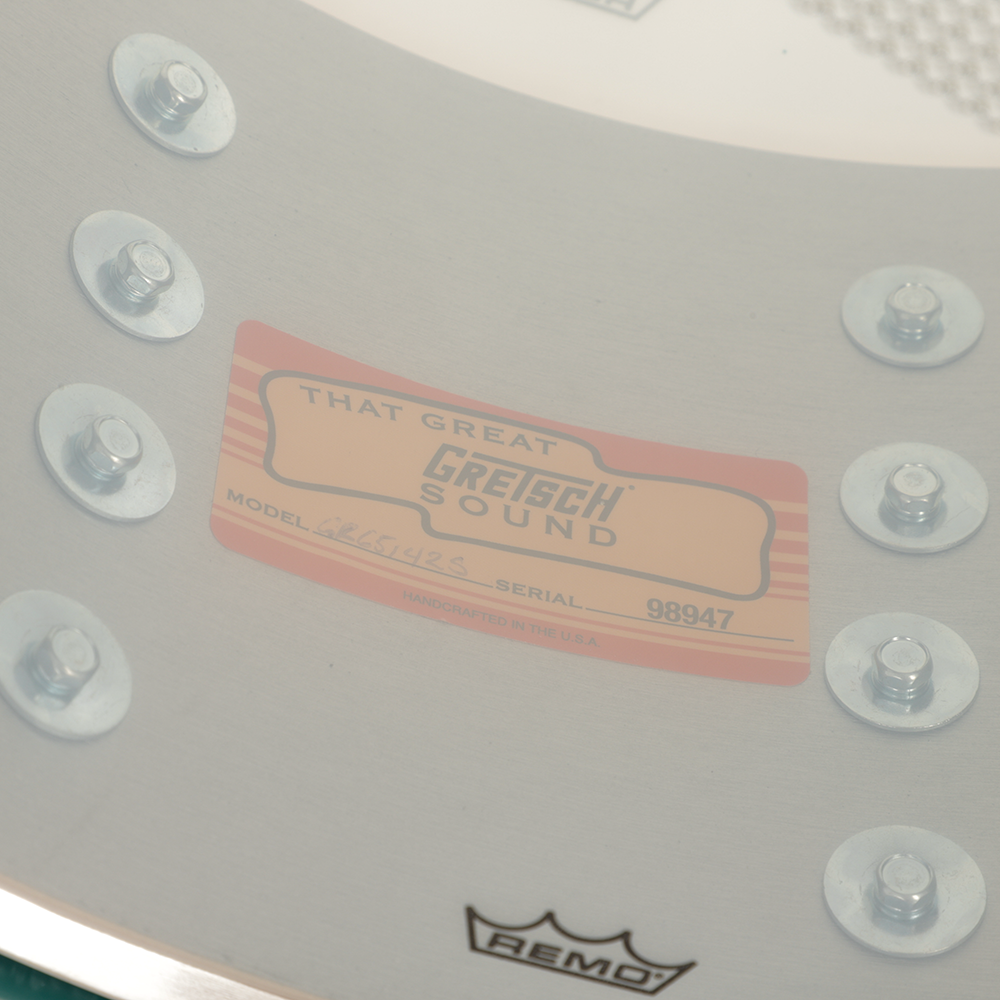 Discover A Magical Warm Tone And Sustain With The Gretsch USA Custom 14" x 6.5" Snare Drum In Seafoam Green Gloss