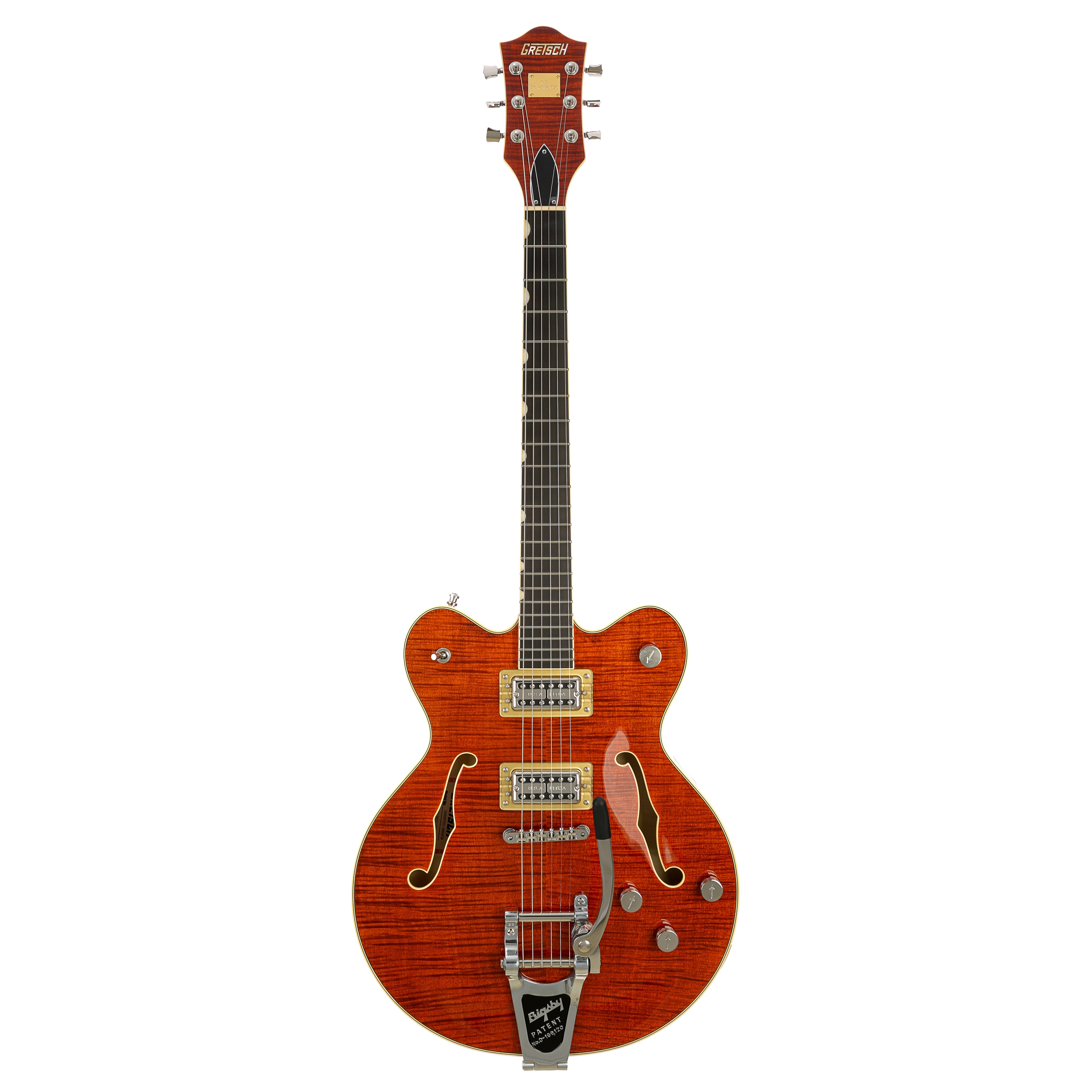Get Gretsch's Flagship Center Block Guitar With The Gretsch G6609TFM Player's Edition Broadkaster Flame Maple Top Semi-Hollow Electric Guitar In Bourbon Stain