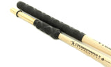 The Headhunters Crossovers II Bamboo are a hickory drum stick shaft and bamboo rods. The diameter size of the shaft is similar to that of a 5B drum stick. Crossovers combine the concept of a bundled rod with a regular drumstick. After lathing the uniquely shaped shaft, a center hole is drilled to make a bulb area. The rod material (bamboo, poly, etc.) is inserted and finished with the 'Grip Control' double 'X' pattern feel.