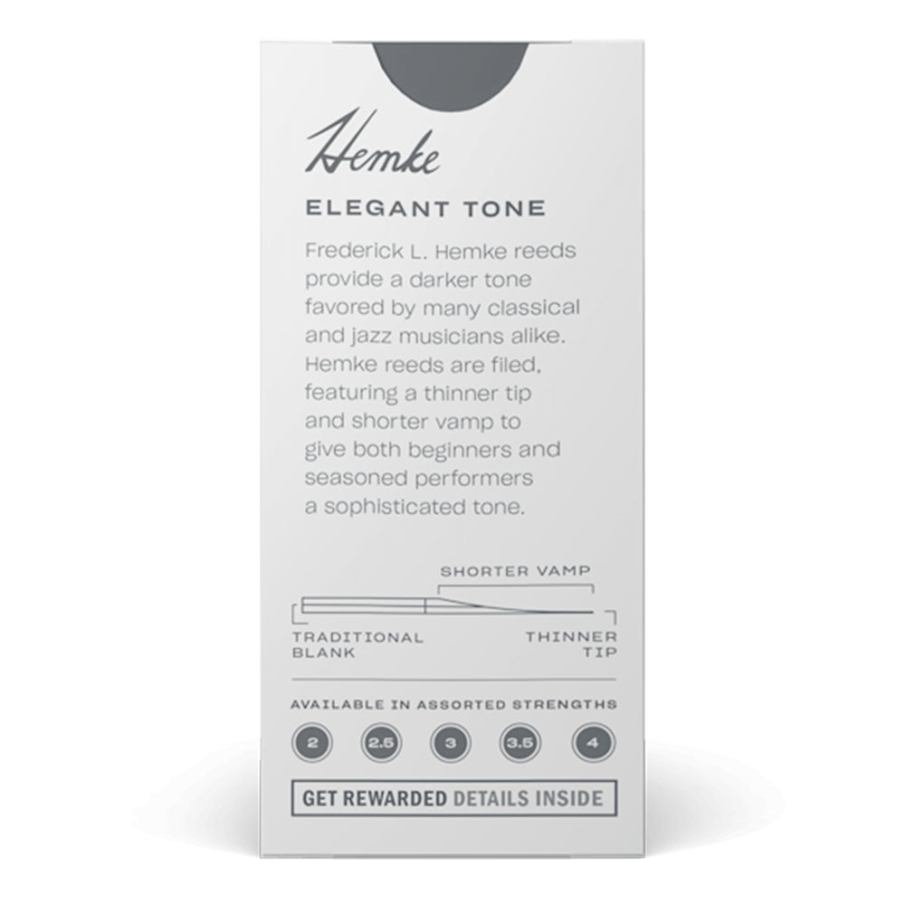 A wide variety of musicians prefer Frederick L. Hemke reeds because their filed, thinner tip and shorter vamp provide both beginners and seasoned performers with a warm, sophisticated tone.