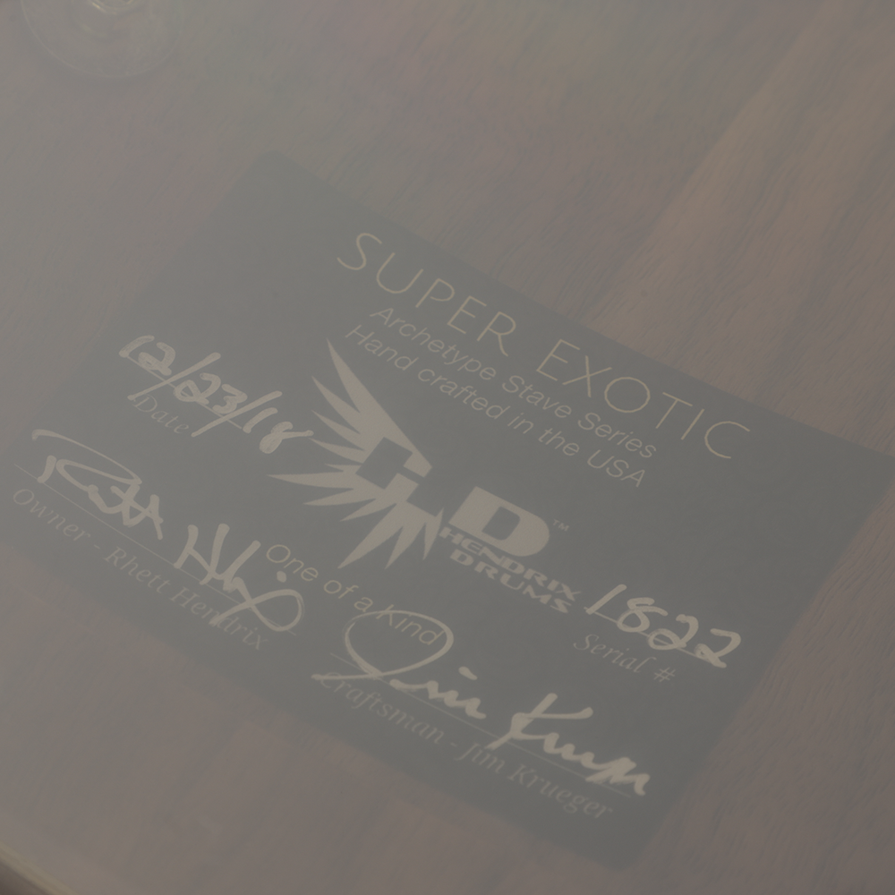 This 14x6.5 Super Exotic Curly Walnut Snare Drum with double ebony inlay, satin finish and a combination of brass and chrome hardware was made in Hendrix's custom shop using their world class archetype snare process. The super exotic wood and the dual inlay make this drum a one-of-a-kind that you will be excited to own and happy to play. The shell is 1/4in thick and have the sound and resonance that sound engineers and professional drummers dream about for both recording and live performance. You’ll find Hendrix hardware, throw off, heads and wires give the best sound at a very reasonable price.