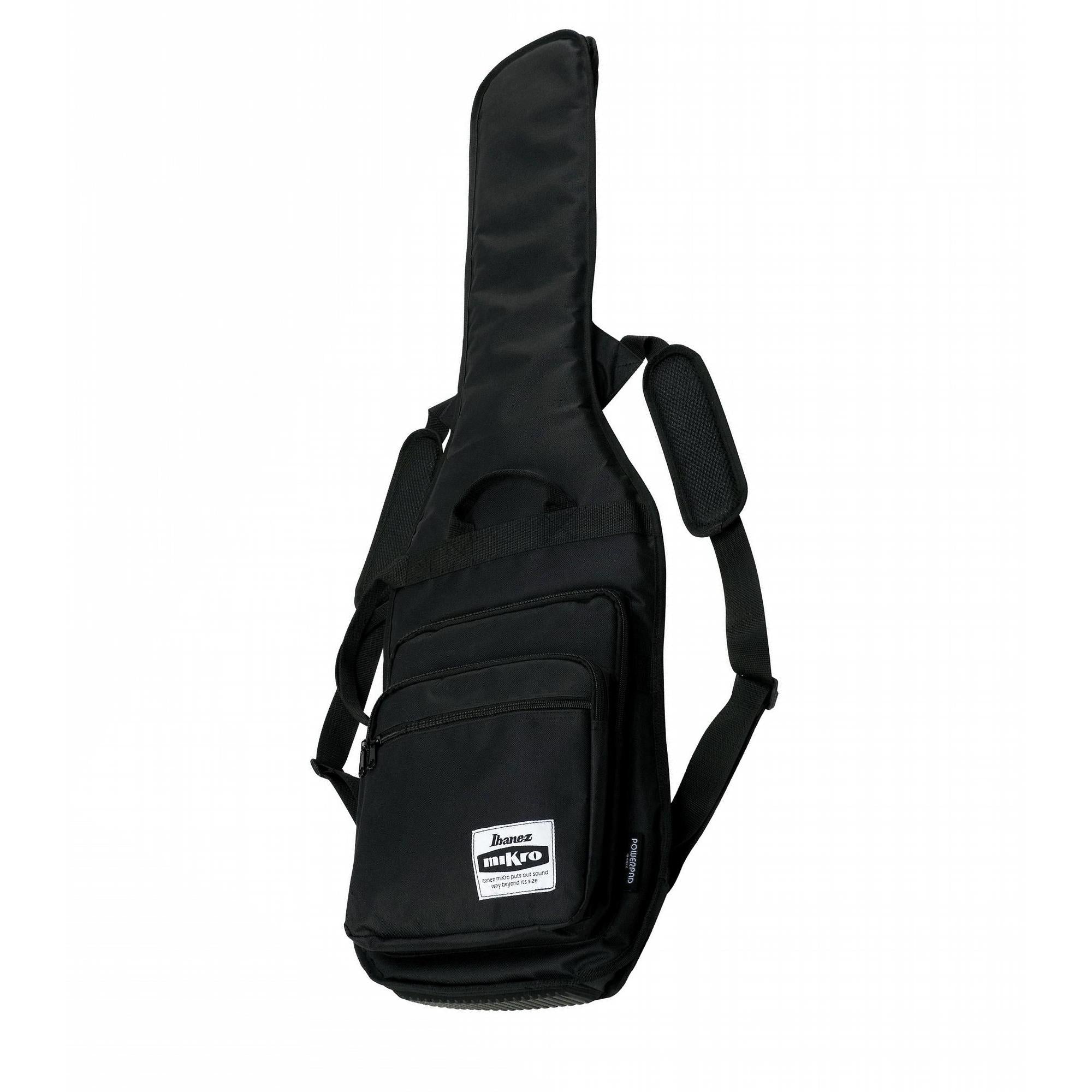 The MIKRO series basses give any size hands the ability to make swaggerly big sounds. Ibanez quality plus many of the same features found on the full sized Soundgear series guarantee the miKro basses always look and play better than anything else in their price range. Not only that, but their rigorous inspection, set-up and warranty is the same as Ibanez's more expensive models. Ibanez miKro models feature maple necks and mahogany bodies for easy playing and warm tone. The white dots on the rosewood fretboard provide excellent contrast for beginning bassists and seasoned professionals.