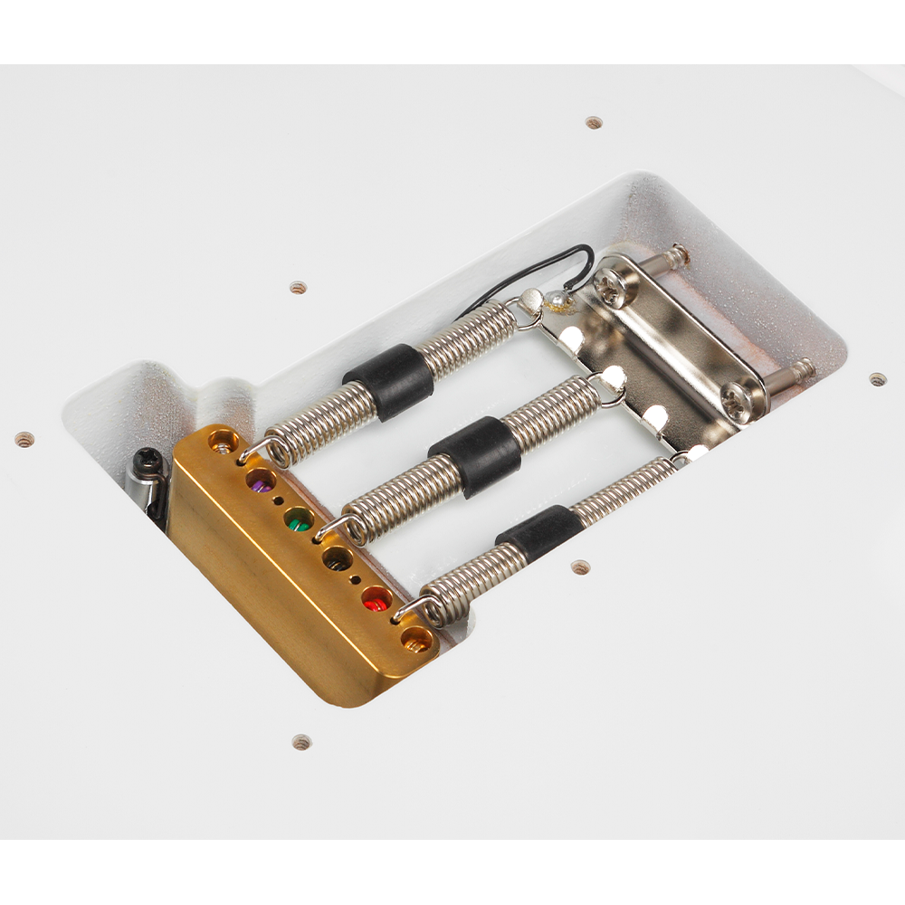 The T1702B tremolo bridge provides quick response and improved articulation. The 10.5mm string spacing allows for easy picking across strings and its snap-in construction makes it easy to load a tremolo arm. The tremolo block and saddles are made of brass, facilitating better overall resonance.