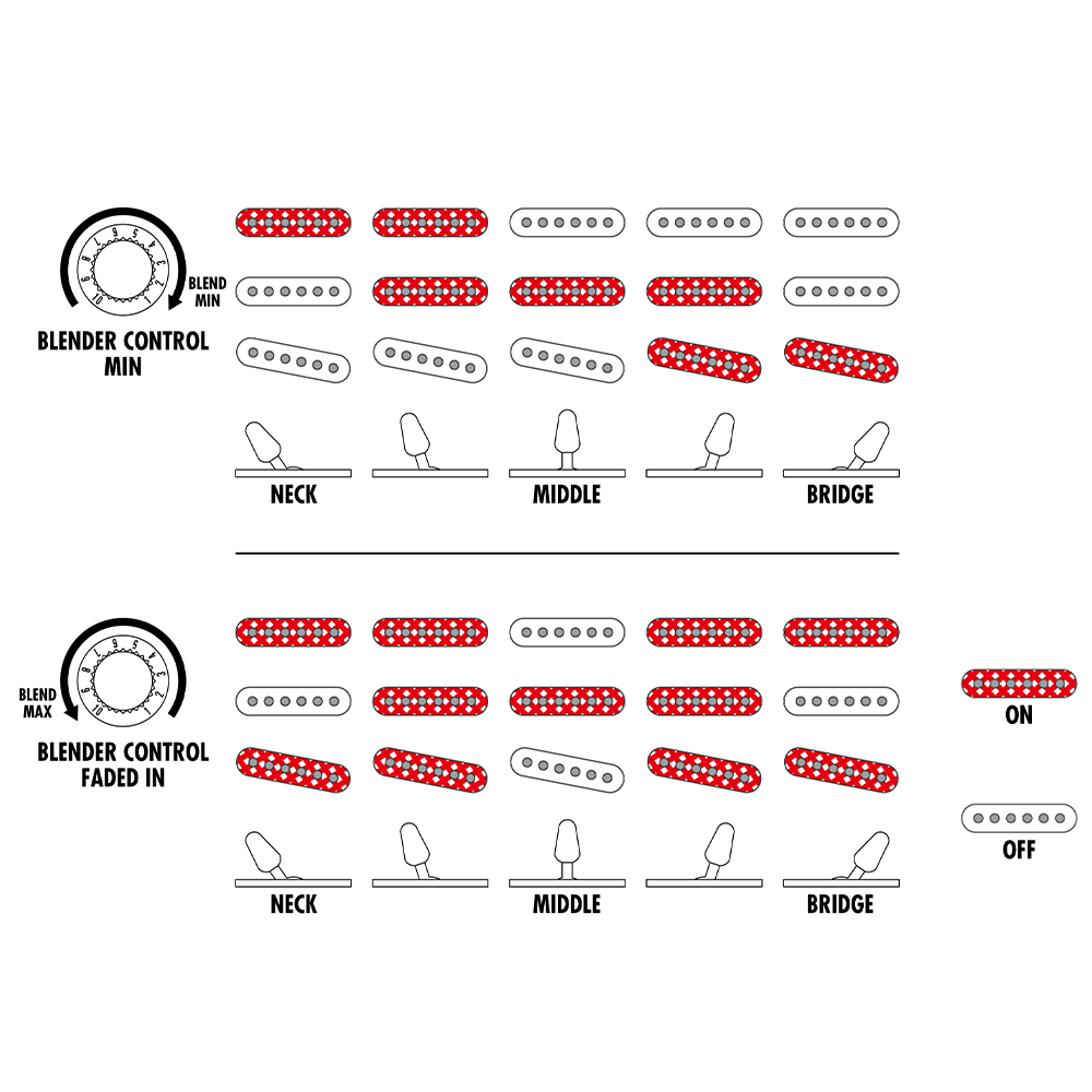 The dyna-MIX 9 offers nine sound variations and can switch between humbucker and single coil modes with just a flick of the mini switch. One mode even simulates a humbucking sound from the combination of two single coil pickups.