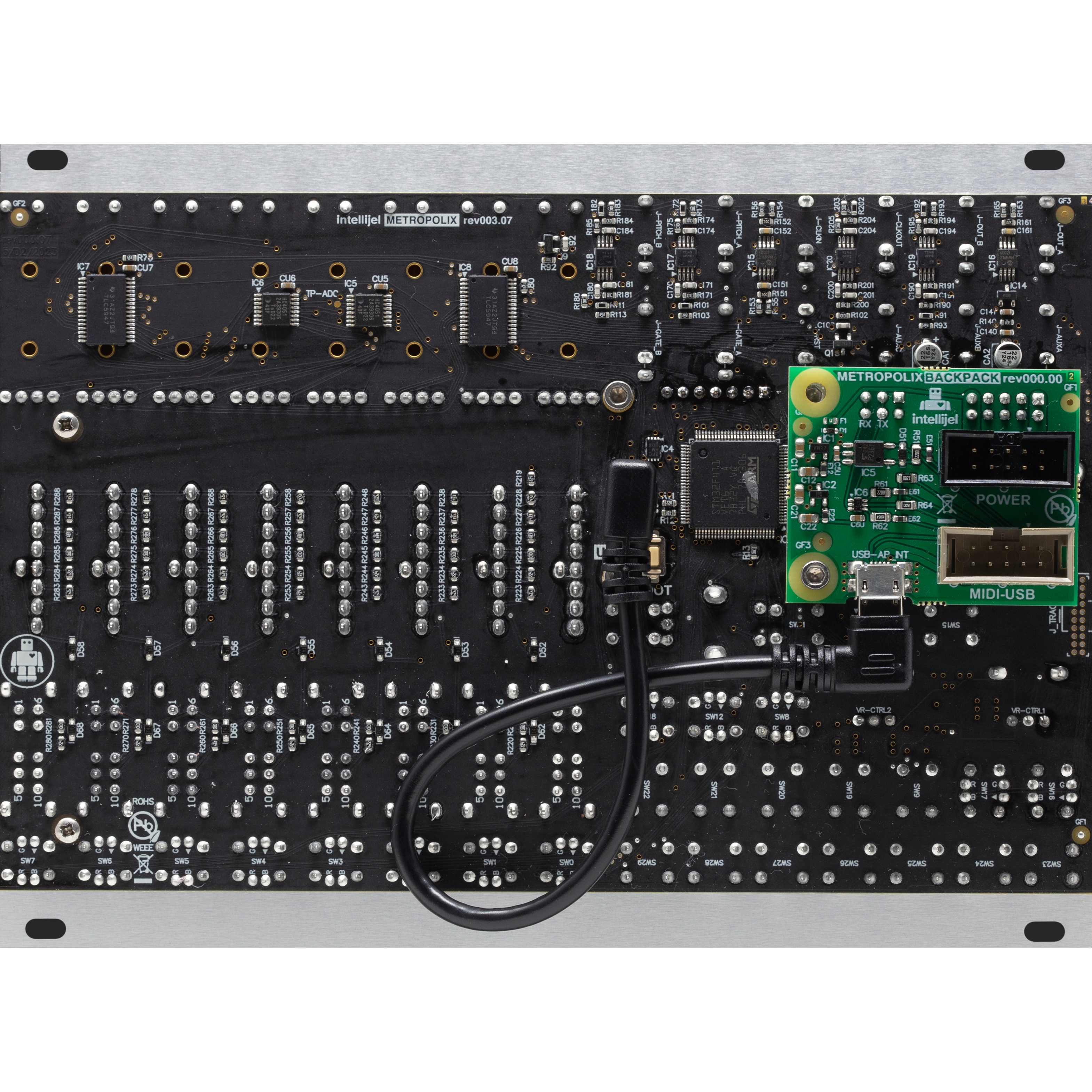 With the Metropolix backpack installed, you can connect directly to the MIDI DIN and USB jacks on the following Intellijel cases (via included 10pin ribbon cable):