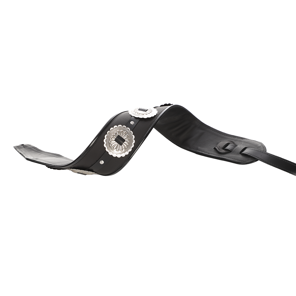 Jodi Head Antique Concho Black Leather Guitar Strap, Number 15 - 4" Width
