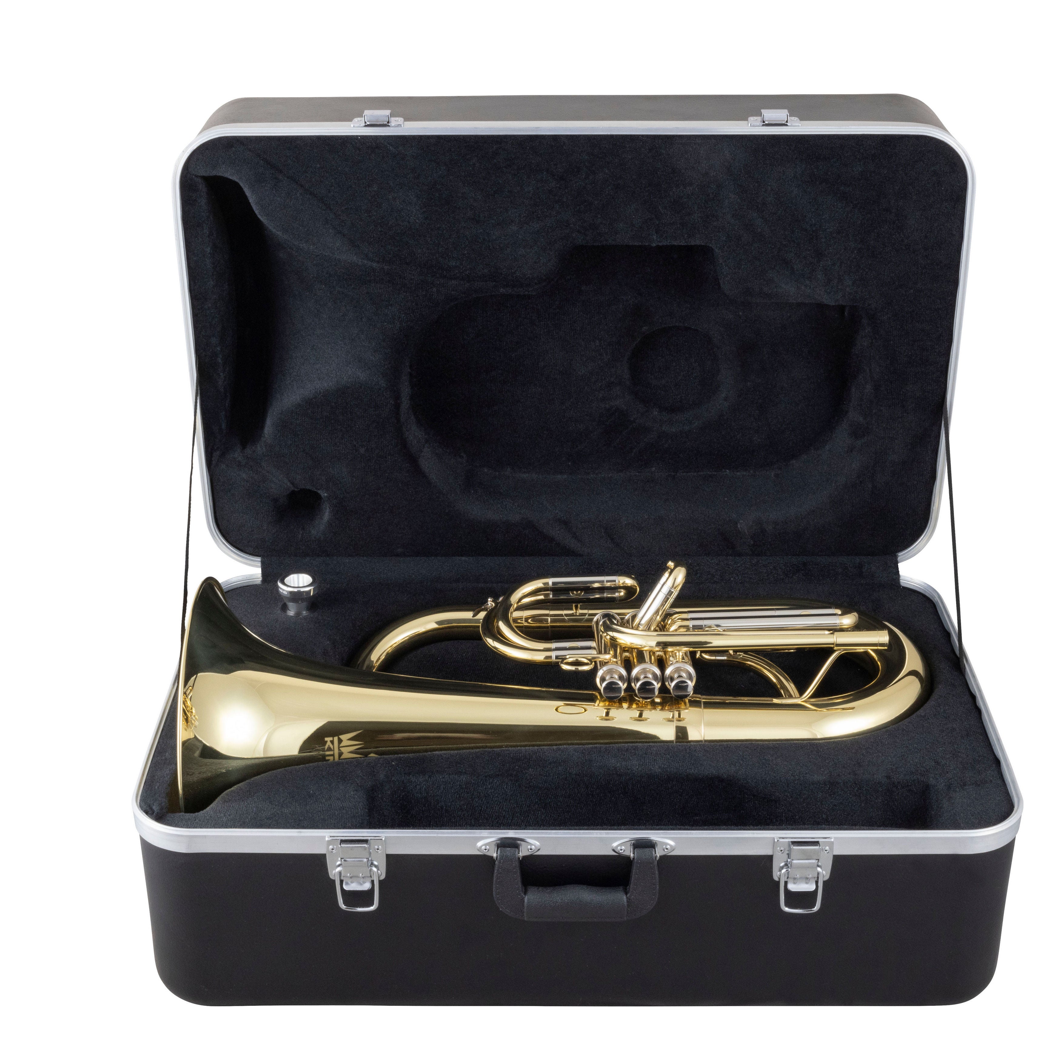 A hybrid marching euphonium, the KME411 brings the broad sound of the concert euphonium to the marching field. The design of the World Champion Blue Devils, their input on ergonomics, balance, and weight makes this instrument easier to carry and play than a traditional marching euphonium. The large-shank mouthpiece, .562” bore, and 11” bell make for a powerful instrument ready for the demands of the competitive marching arts.