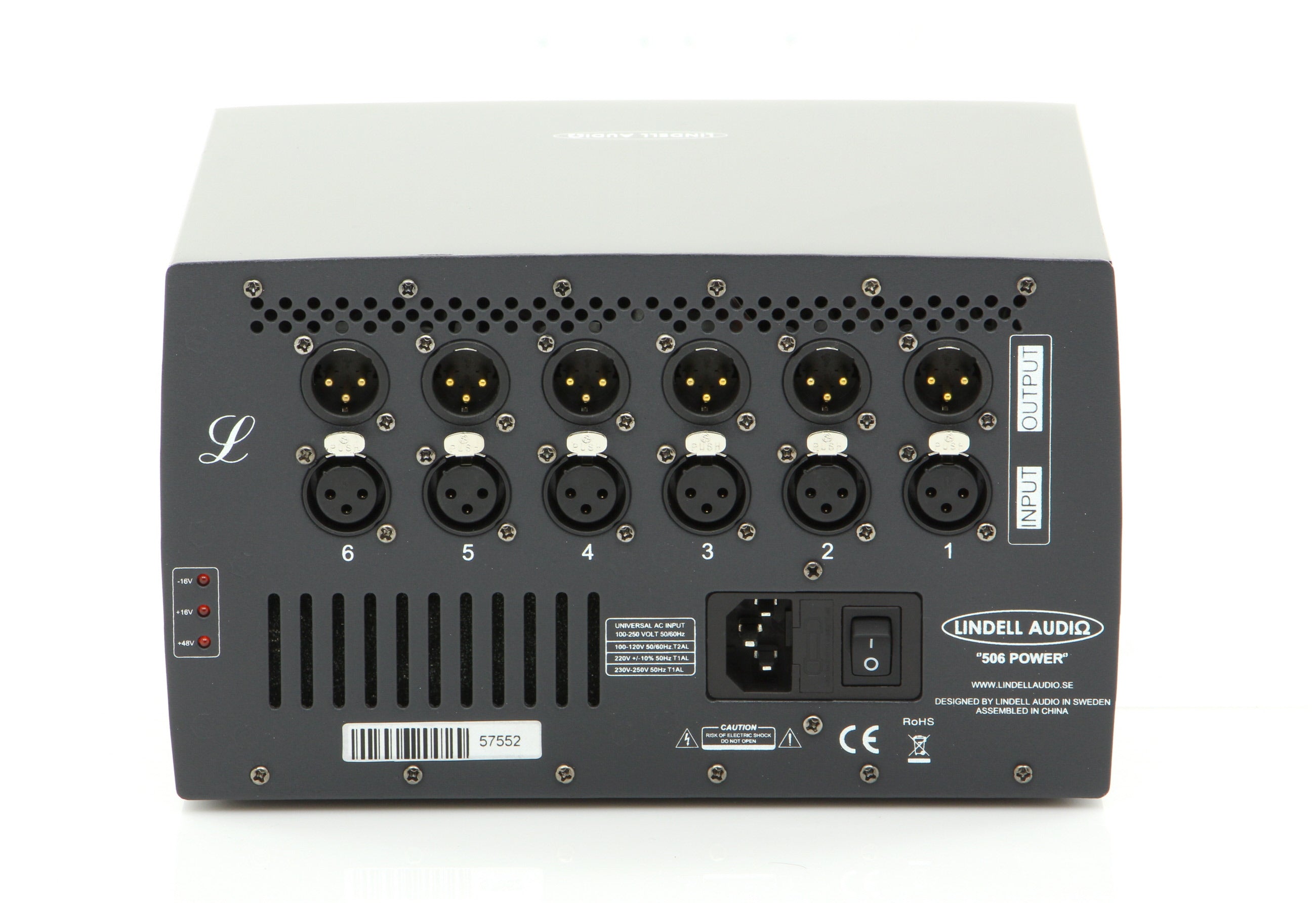 The 506 Power chassis holds up to six 500-series modules in a compact yet rugged unit. This lightweight aluminum chassis has a small footprint that fits in any studio. The affordable 506 Power gives you exactly what you need to get your studio up and running. Create your ideal signal chain with the Lindell Audio 506 Power chassis.
