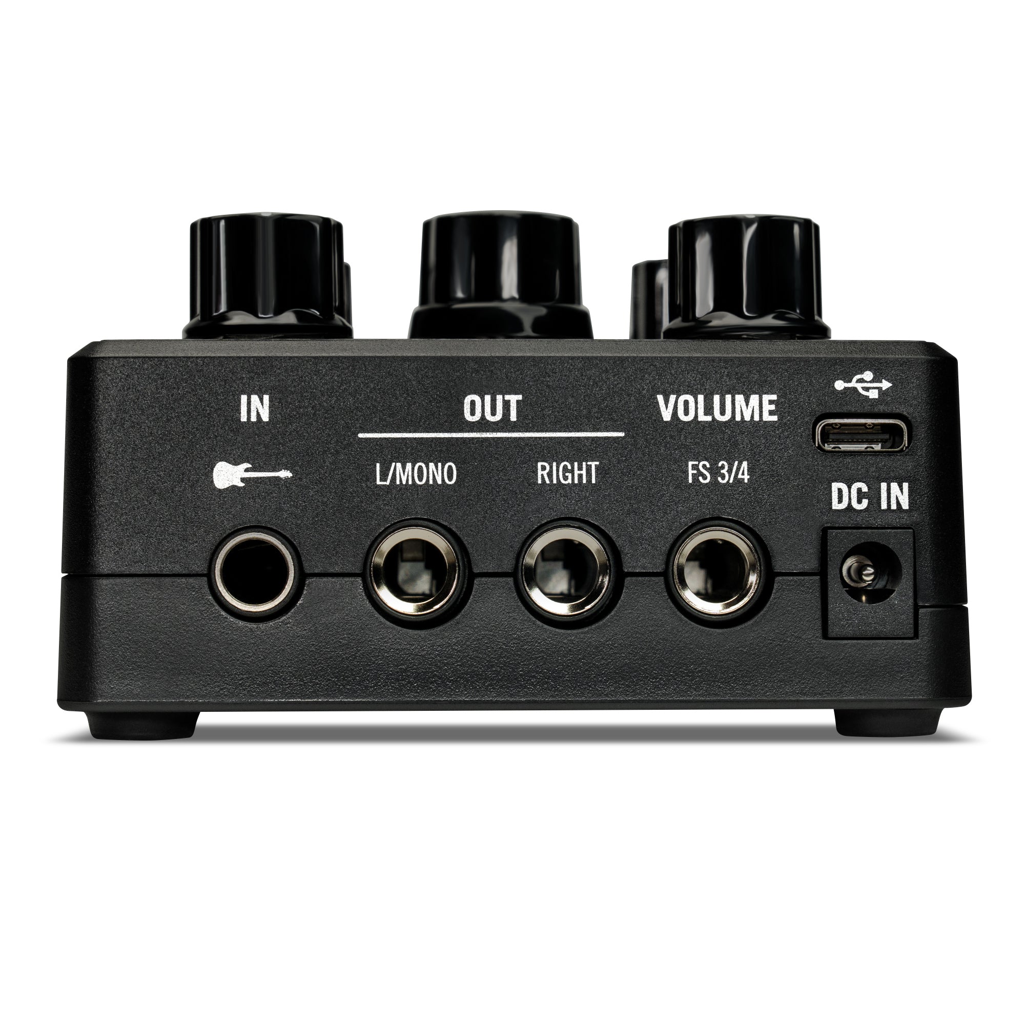 POD® Express Black is an ultra-portable amp and effects processor that gives you a toolbox of sounds for crafting classic and modern, high gain tones. Simple controls make it easy to use, while models derived from the award-winning HX® family of processors ensure exceptional hard-driving sound quality and authentic feel. POD Express Black gives you seven amps, seven cabs, and 17 distortion, modulation, reverb, and delay effects—including a looper—and it may be powered by three AA batteries (included) or an optional 9-volt power supply. Download the free POD Express Edit app for your computer or mobile device to quickly and easily access a world of deeper tone editing, preset management, and global settings. Additional features include stereo outputs, tap tempo, a tuner, a noise gate, a headphone output, and a USB-C audio interface with re-amping capabilities. Add an optional expression pedal for volume control, or up to two footswitches to select presets or turn effects on and off.