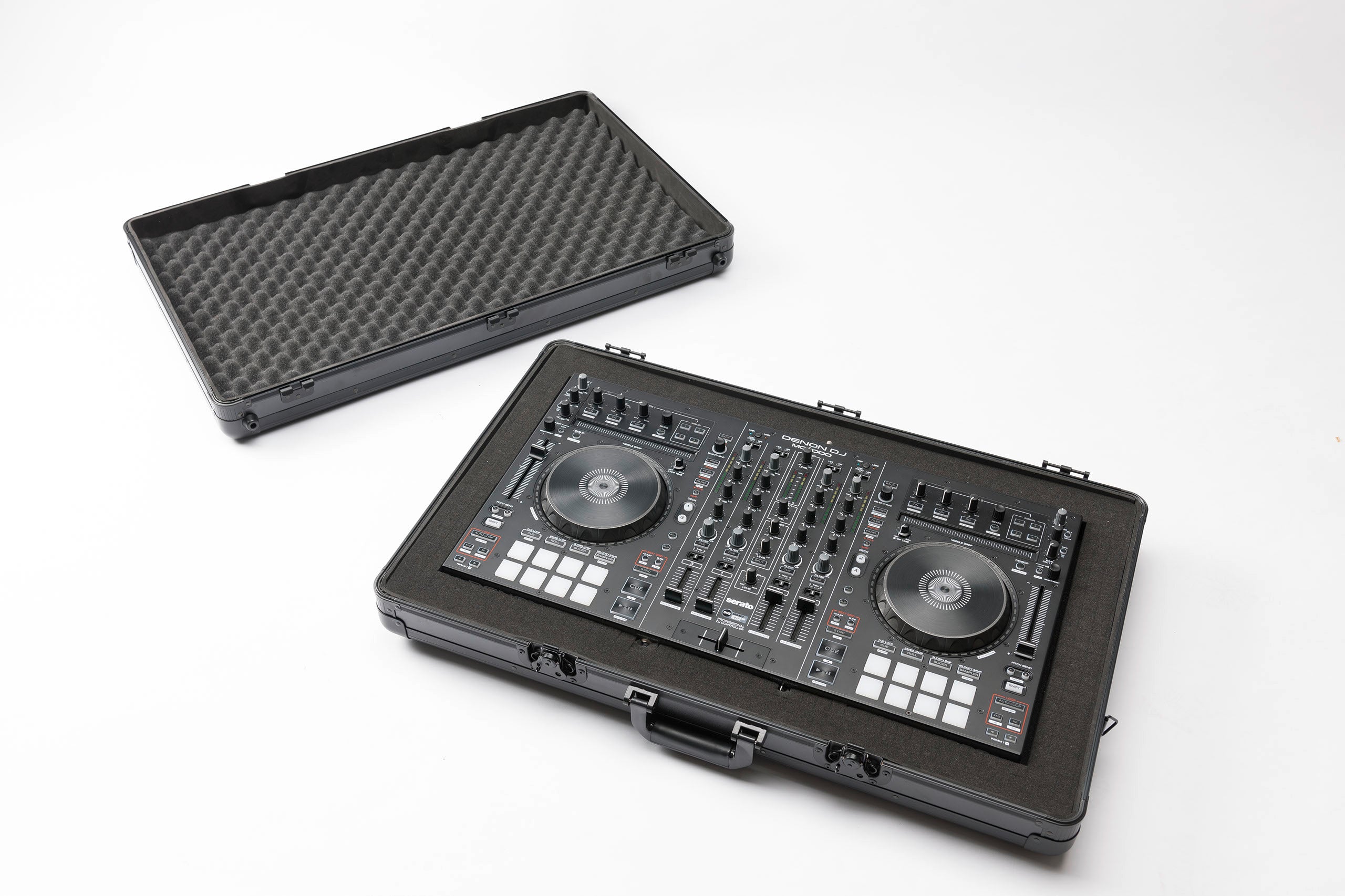 The new CARRY LITE DJ-CASE XXL PLUS is a very lightweight and compact carrying solution for your DJ-equipment and comes in a nice full-black matt finishing. Constructed from laminated MDF panels and anodized aluminum profiles the CARRY LITE design features a fully padded interior with a variable pick & pluck foam that allows to create individual adapted compartments for various-sized DJ-controllers such as Pioneer DDJ-SX2, DDJ-SX3, Denon MCX-8000, Denon MC-7000, Roland DJ-808 or similar-sized DJ-controllers. The pick & pluck foam consists of two separate layers providing the additional option to create another slot underneath the controller for laptop or cable storage.