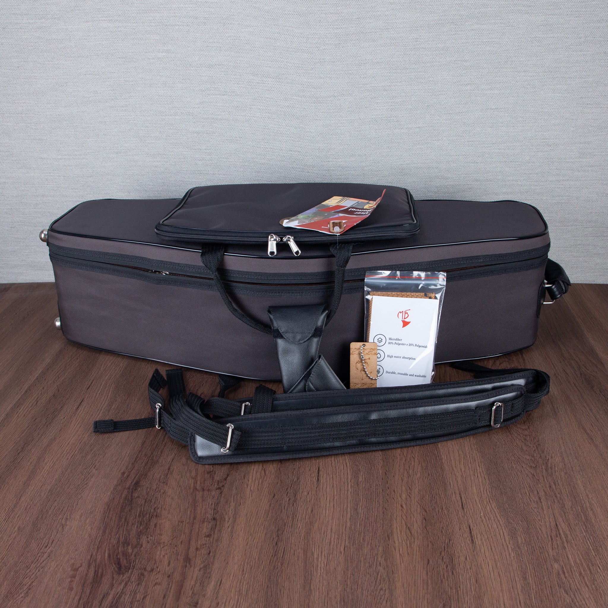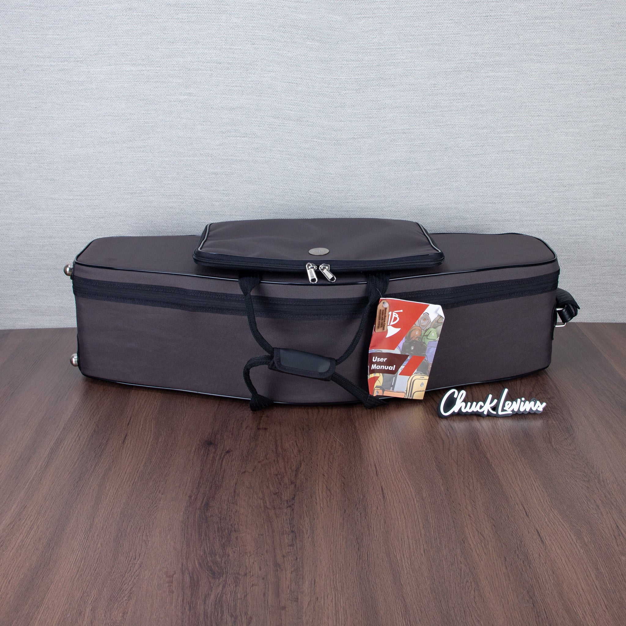 The Marcus Bonna Double Case for Tenor and Soprano Sax with Fixed Straight Neck - Carbon Fiber Shell - Dark Brown is a premium solution for saxophonists who value protection and style. This case is specifically designed to fit an alto saxophone and a non-detachable soprano saxophone with a straight neck, with additional room for a flute. Its carbon fiber shell ensures lightweight durability, while the dark brown finish adds a touch of elegance.
