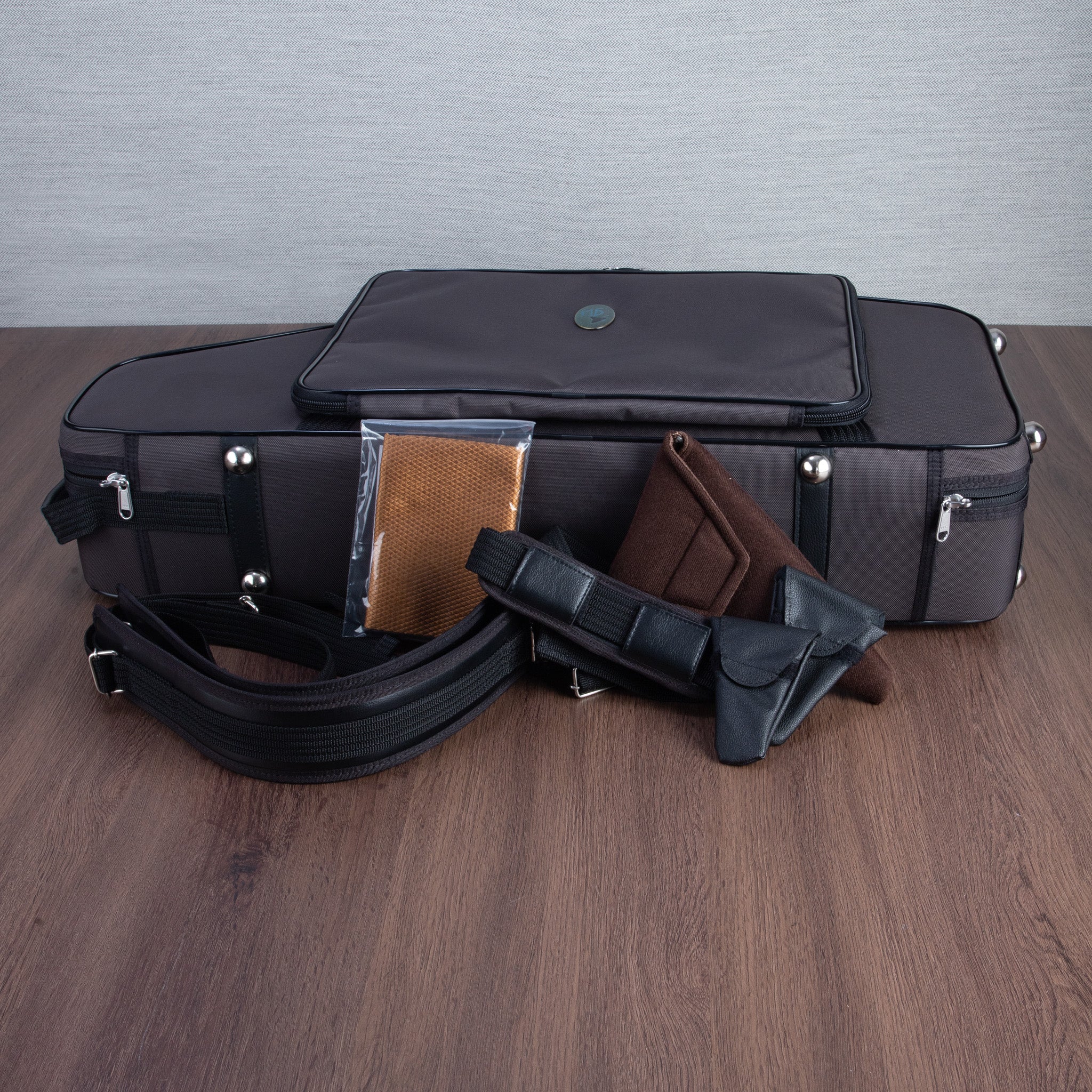 The Doubler's Dream Case - The Marcus Bonna Double Sax Case for Alto and Straight Soprano with Detachable Neck - Brown Nylon