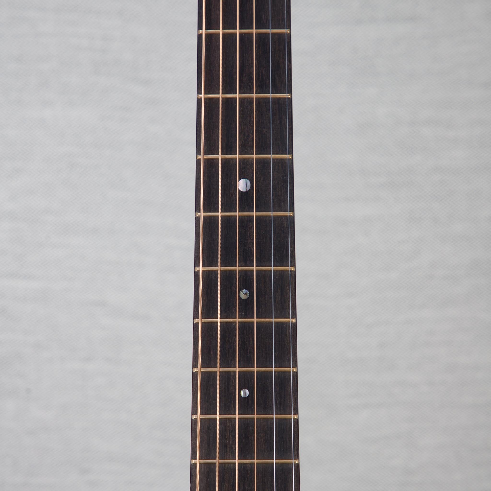 The D-18 Modern Deluxe is a new take on Martin Vintage. This guitar is packed with custom features and modern technology that you have to see, feel, and hear for yourself. The vintage appointments include a spruce VINTAGE TONE SYSTEM® (VTS) top, a dovetail neck joint, and natural protein glue construction that give it the rich, fully aged Martin tone that has inspired generations. The look is unlike anything in our production line to date with East Indian rosewood binding, stylish gold frets, gold open-gear tuners, and a unique 1930s style script logo inlaid in pearl on the headstock. Some ultra-modern features include Liquidmetal® bridge pins with red dots and a composite carbon fiber bridgeplate that boosts volume. And we’ve included a new neck shape that is slightly asymmetrical for maximum hand comfort up and down the fretboard. This guitar is anything but standard.