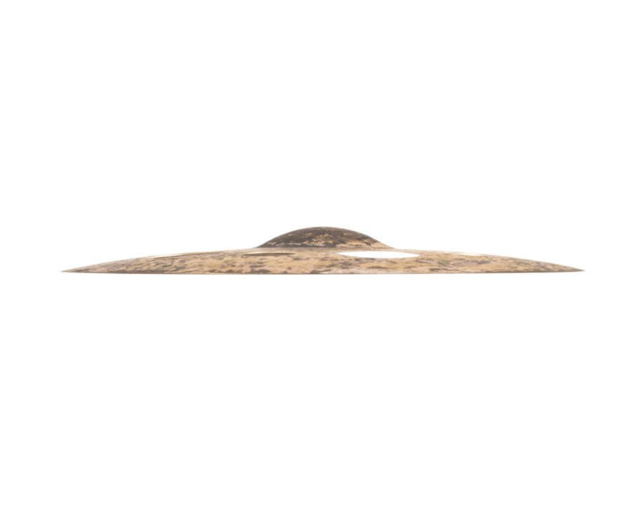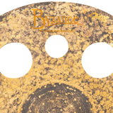 A completely unique look and sound is found in this instrument. It starts with hand-hammering and undergoes several steps until the holes are added. The result is cymbal that quickly speaks with a trashy, white-noise burst followed by fast, dry decay. Great for accents and stacking.