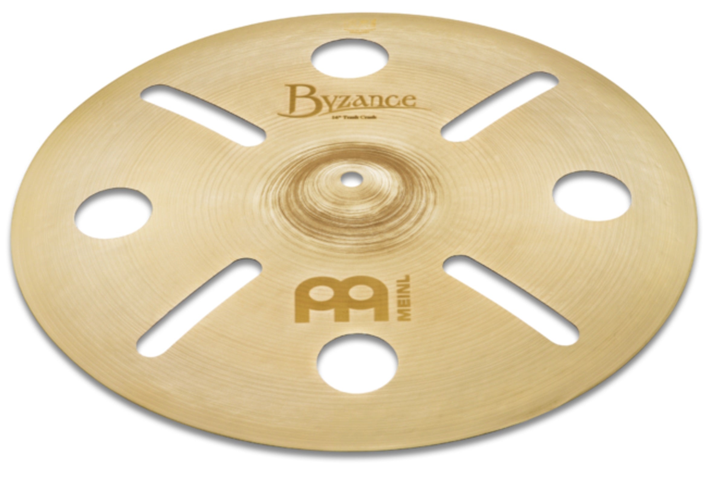The different sizes and shapes of the Meinl Byzance Vintage Trash Crash Cymbal cut-outs gives the cymbal a unique look and a wide spread and a trashy, noisy sound. Recommended for quick accents and punctuations.