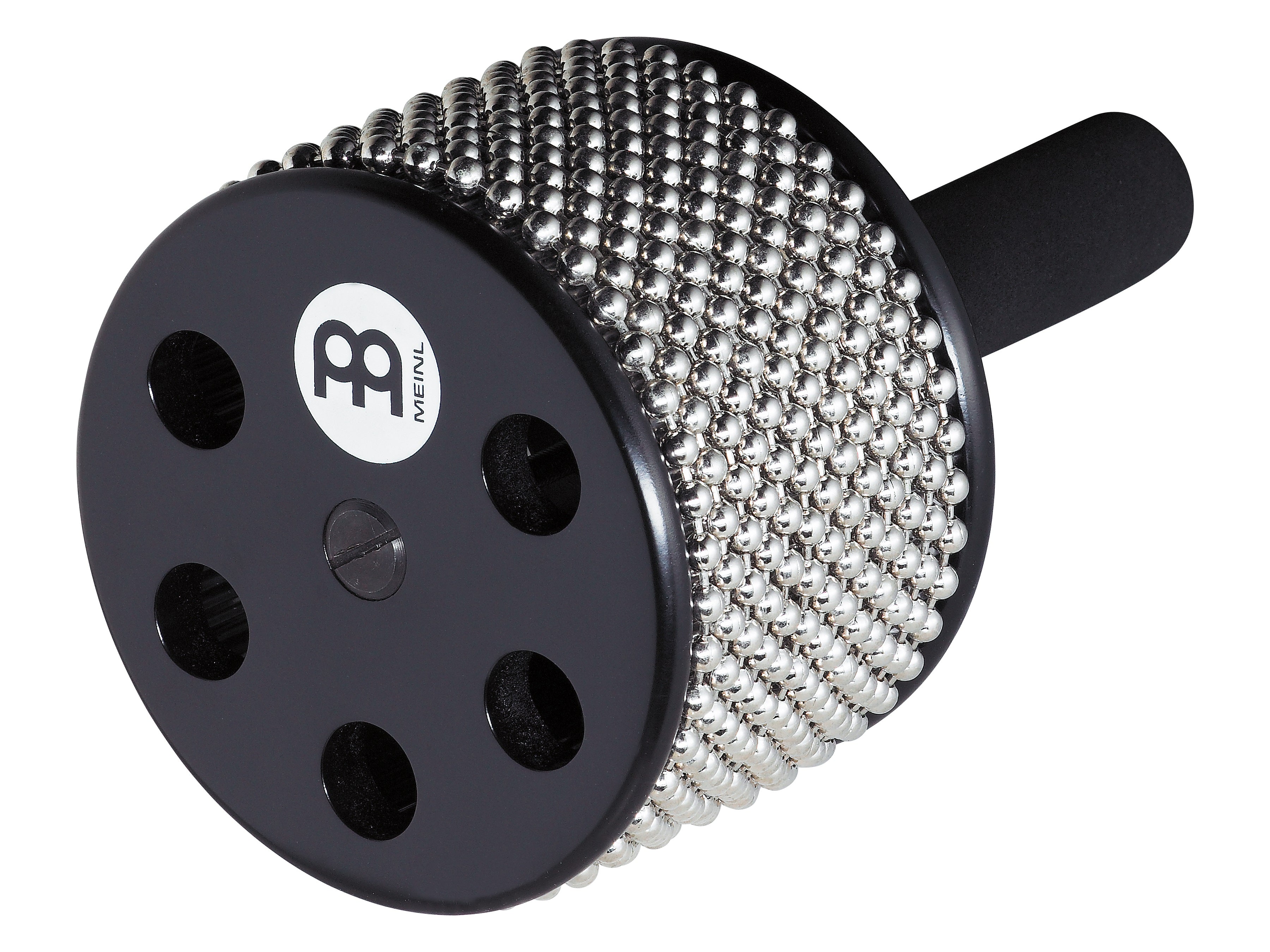 Turbo Cabasas (Patented) Large The MEINL Turbo Cabasas are a great innovation, with significantly more volume than normal cabasas. This comes from the sound ports in the resonating chamber. The Turbo Cabasas bring the classic cabasa sound to a new level that will cut through any sonic environment. Features 5 sound ports on each side for more volume (CN, DE, US patent) Material Steel chain and stainless steel cylinder Wooden handle with padded soft grip Size large