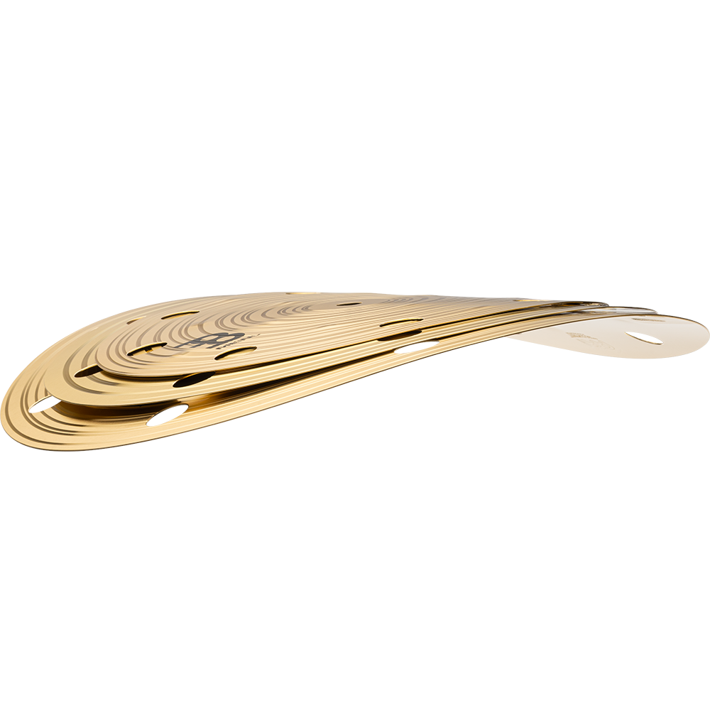 The 3-piece HCS 10/12/14 Smack Stack features three discs shaped to create a distinctive sound effect. The stack can be manipulated by adjusting the tension of the cymbal stand’s wing nut.