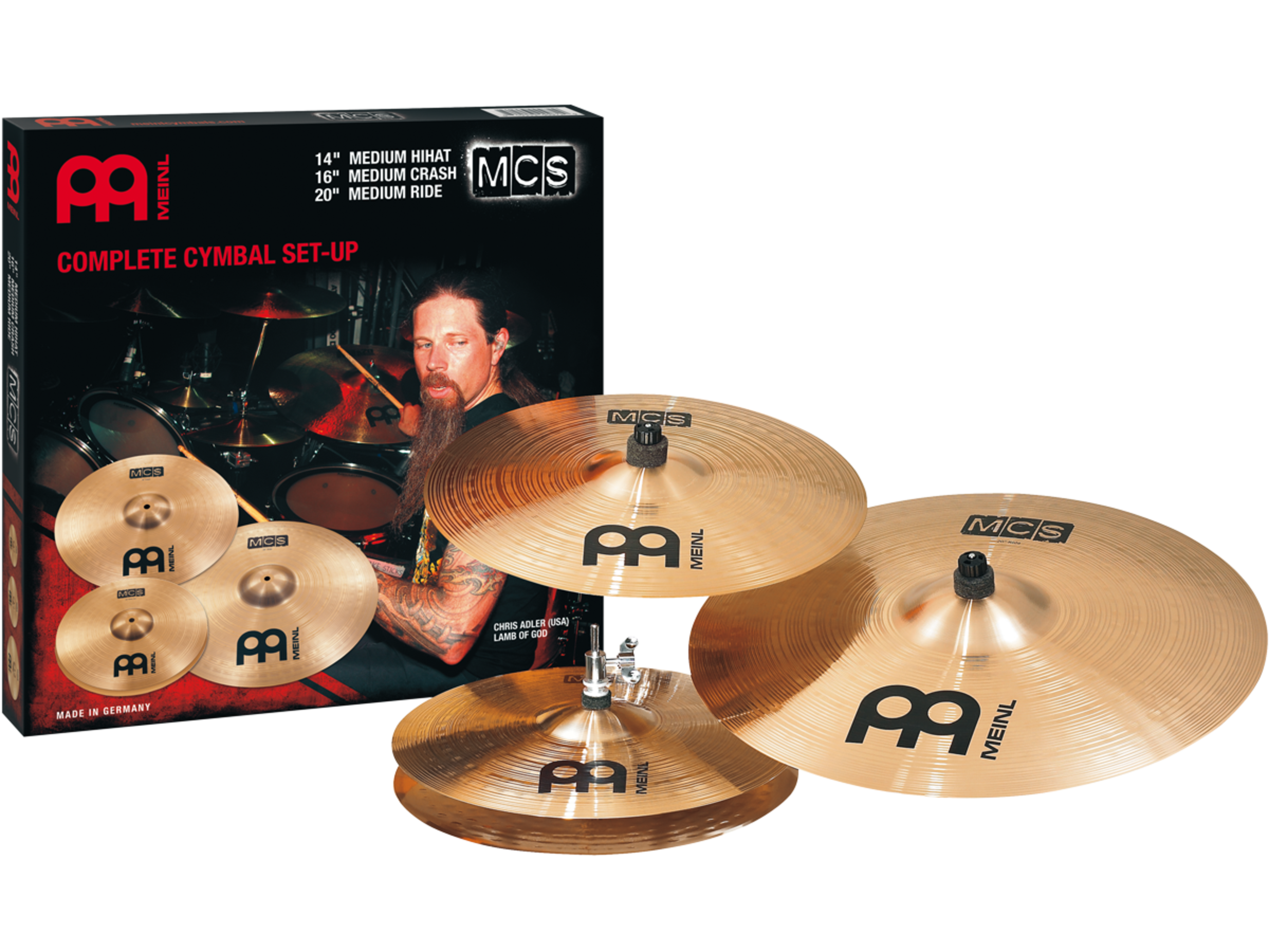 The MCS COMPLETE CYMBAL SET-UP contains:14" Medium Hihat, 16" Medium Crash, 20" Medium Ride.