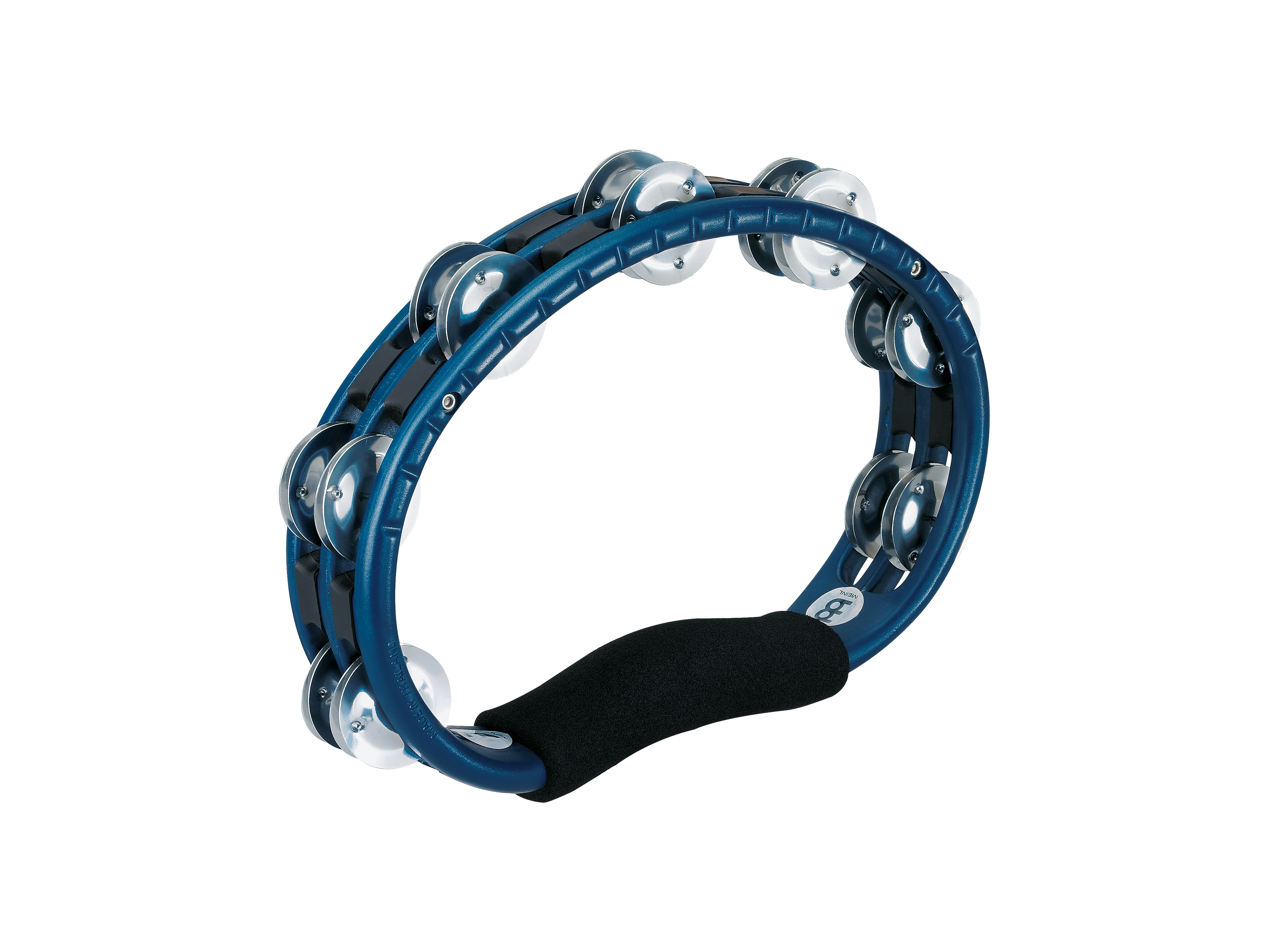 Hand Held Traditional ABS Tambourine, Aluminum Jingles 2 rows These ergonomically shaped tambourines are available as hand held or mountable versions. The durable ABS frame allows hard hitting and energetic hand playing. The hand held versions are extremely light weight for extensive playing. Aluminum jingles produce a light sound that fits in studio and accoustic situations. Features Padded soft grip for more playing comfort Ergonomic design Guiro style playing surface "Sandwich" construction Material Aluminum ABS Plastic