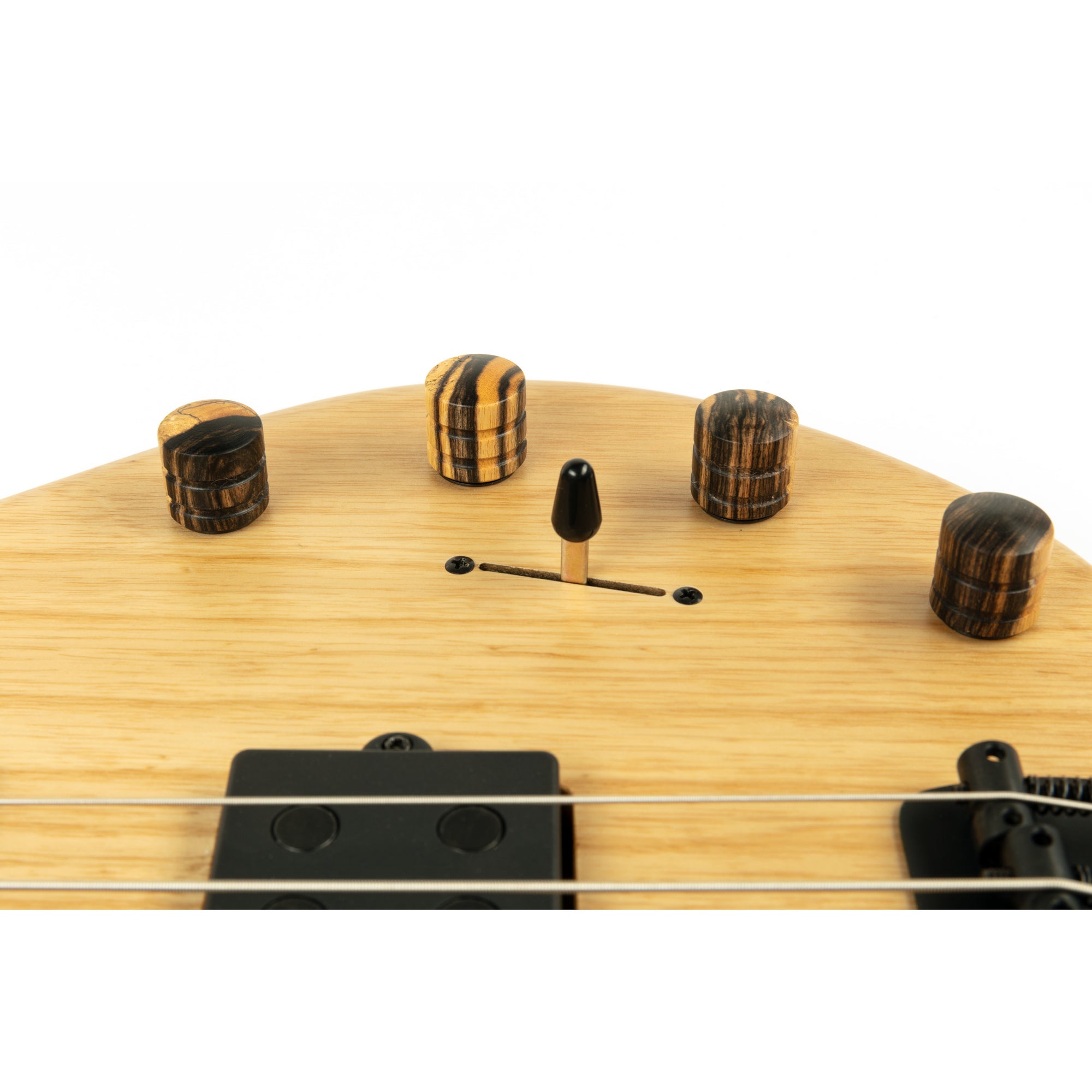 One of just 105 for the world, this special edition Stingray 4 features a lightweight ash body with a smooth satin natural finish. The oil and wax finished figured roasted maple neck with maple fingerboard is accented nicely with black block position markers and unique striped ebony wooden control knobs. Equipped with dual neodymium humbucking pickups, 3-band EQ, and 5-way switch, this bass delivers all of the familiar Stingray punch along with a variety of coil voicing options. Contrary to most other SR4 basses, the traditional large pickguard has been removed, in this case, to showcase the exquisite premium grain ash. Other key features include all-black hardware and ergonomic, lightweight cloverleaf tuners.