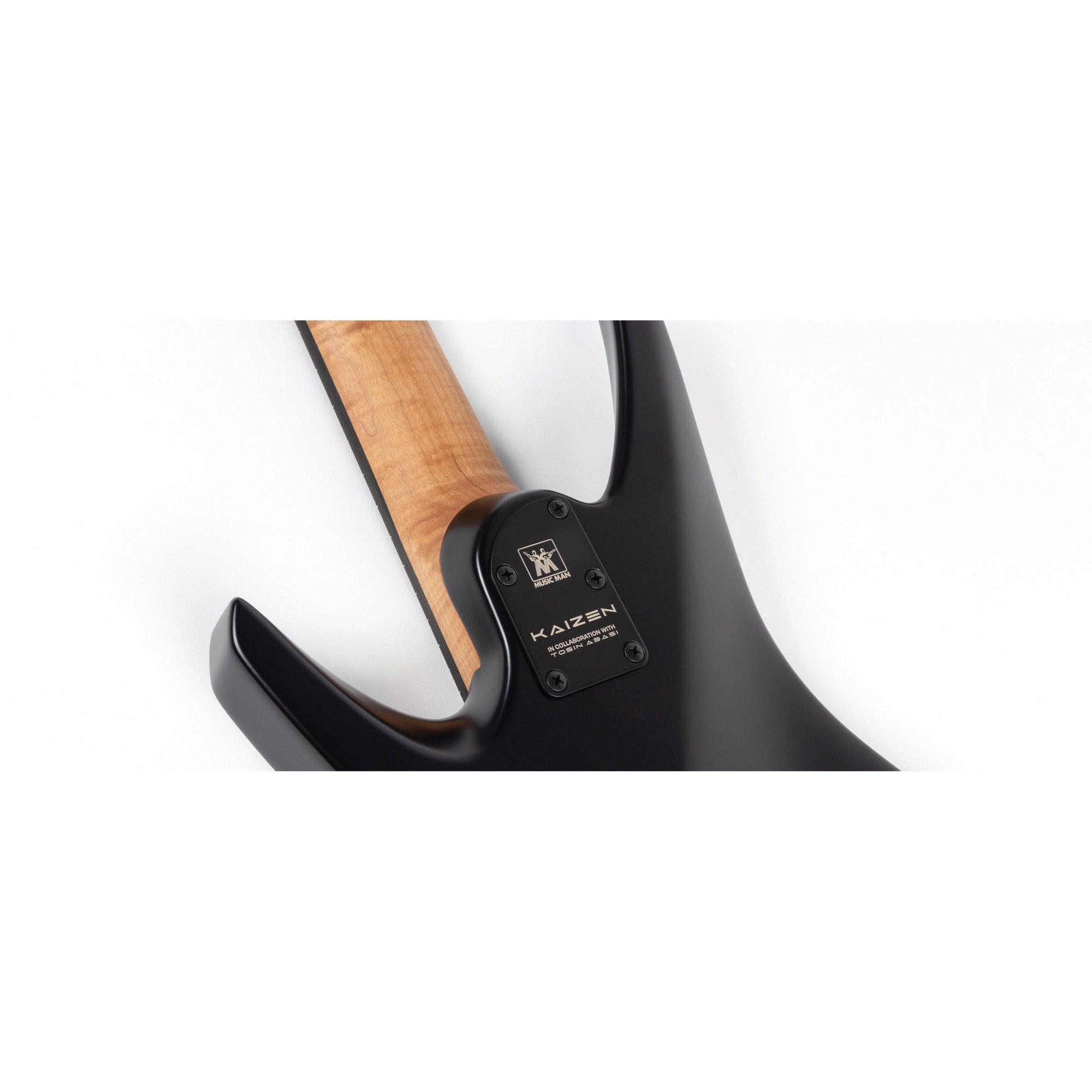 Ernie Ball Music Man proudly presents the Kaizen, an all-new visionary collaboration between the Ernie Ball Music Man design team and the world-renowned guitarist, innovator, and designer Tosin Abasi. Built for the modern player, the 7-string Kaizen is crafted with forward-thinking design concepts guided by Tosin Abasi's unique playing style and vision. Offered with a decidedly contoured alder body, roasted figured maple neck, and ebony fretboard, the multi-scale length fretboard also features an "infinity radius" that provides improved visibility of the fretboard in any playing position. The electronics include a new Music Man HT bridge humbucker, custom offset neck humbucker, and a 3-way switch wired with a custom middle position.