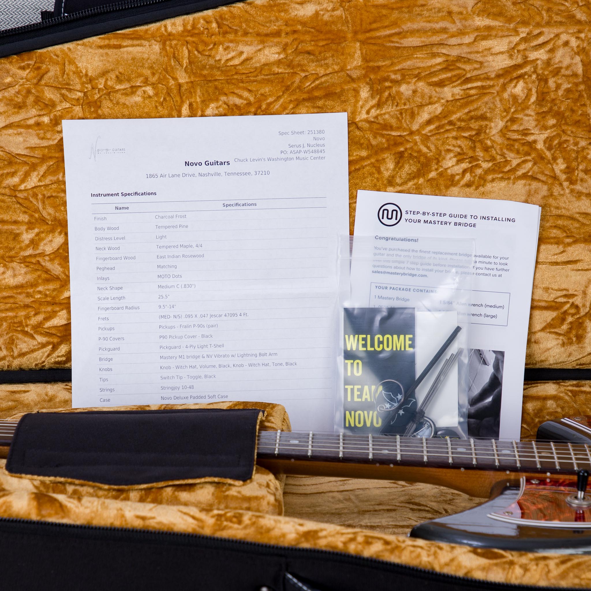- Bridge & Tremolo: Mastery M1 bridge and NV vibrato with lightning bolt arm