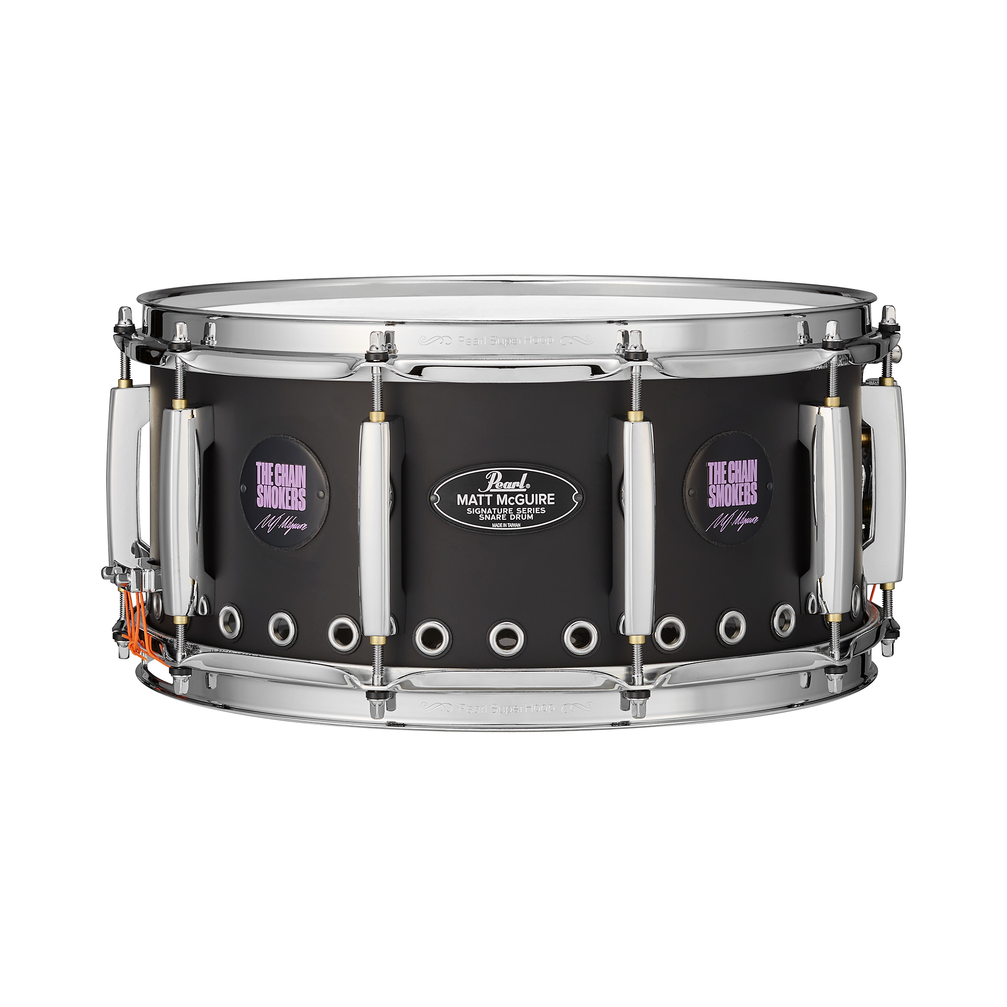 Where There's Smoke, There's Fire!! Designed by influential YouTuber and drummer for The Chain Smokers to fill arenas with sound, the Matt McGuire Signature Tour Edition Drum features steel shell volume and fully-vented sensitivity. The World's first snare drum featuring embedded NFC Chip technology. A simple tap with any Smartphone instantly unlocks exclusive content created by Matt himself. Matt McGuire's Pearl Signature Snare Drum is made to bring the arena-filling sound Matt demands for The Chainsmokers to any drummer that plays it. Its unique tonal bite comes from a 1mm Rolled Steel shell that features 30 reinforced 1/3-inch vents around the bottom edge. This unique design enhances snare response; channeling the force of each hit through its 6.5-inch deep chamber and outward in every direction like a shock wave.