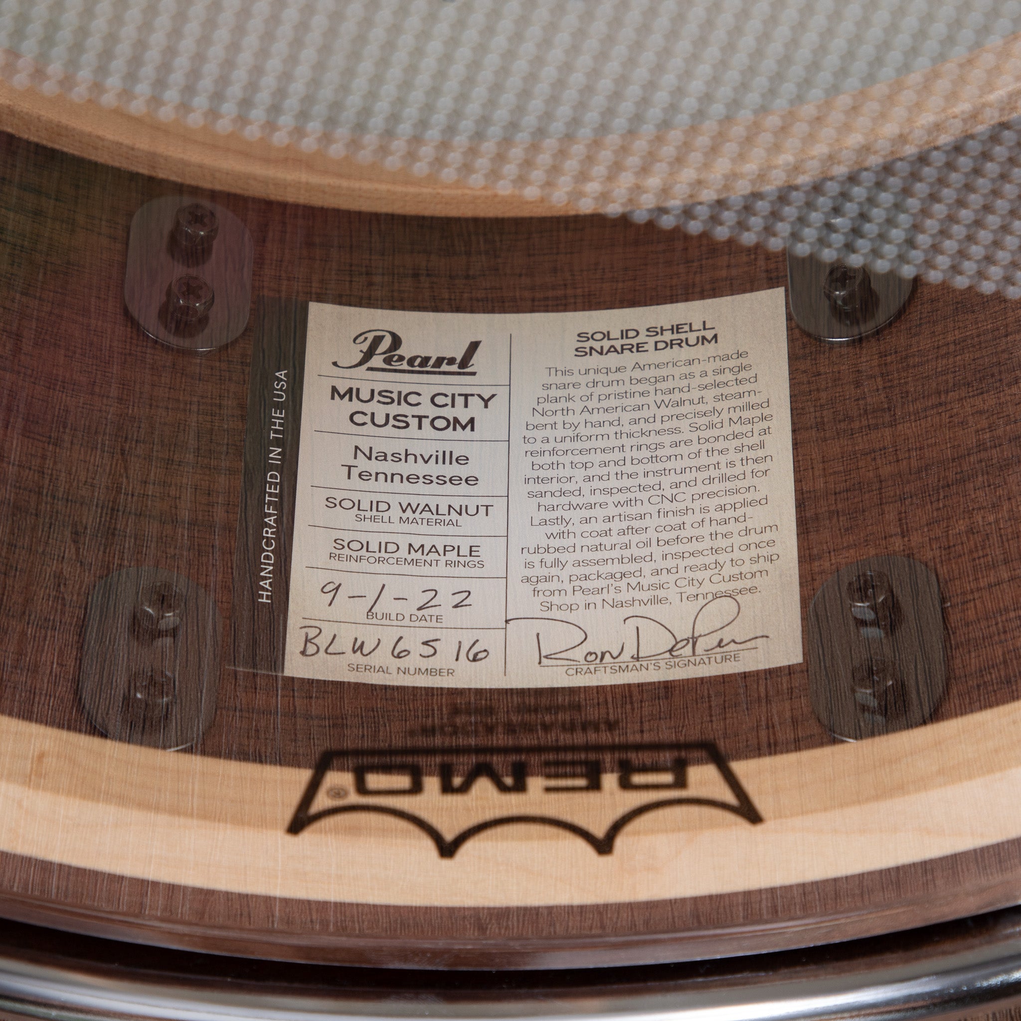 Natural Beauty and Sound, The Pearl Music City 14x6.5-Inch Custom Solid Walnut Snare Drum - Natural with Kingwood Center Inlay