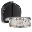 With an immaculate vintage style that is only outdone by its powerful top-heavy projection, the President Series Phenolic Pearl snare is a true modern classic with retooled, modern elements. Fitted with Pearl's original "Battleship" lug, the tone can be sculpted with the fully adjustable internal muffler. A true original from their 75-year history, the President Series was Pearl's first professional drum set range. Employing the solid shell characteristics of hermetically pressurized Phenolic material, this unique thermo-layered resin's loud sonic attack makes it ideal for snare drums. Other features include Pearl's original script badge, Pearl White Oyster covered finish wrap, Remo USA Head and Nomad carrying case, and a commemorative numbered/signed certificate of authenticity. As only 75 will be available, availability is extremely limited.