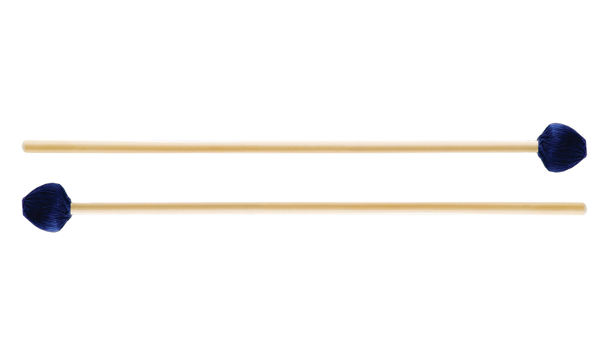 ProMark DV7R mallets feature a mushroom-shaped rubber core to achieve the articulation needed on the vibraphone with the tonal warmth of a rubber core. Triple forte dynamics cut through in the stadium while pianissimo dynamics are delicate on stage. Synthetic cord wrap covers the head. The DV7R provides medium-hard articulation and focused tone. Rattan handles offer the necessary flexibility while remaining durable enough for demanding performance. Designed by The Blue Devils percussion staff to be a diverse line of mallets for indoor or outdoor percussion, the eight mallets in this line were created to cater a variety of players and educators by featuring four graduated vibraphone mallets.