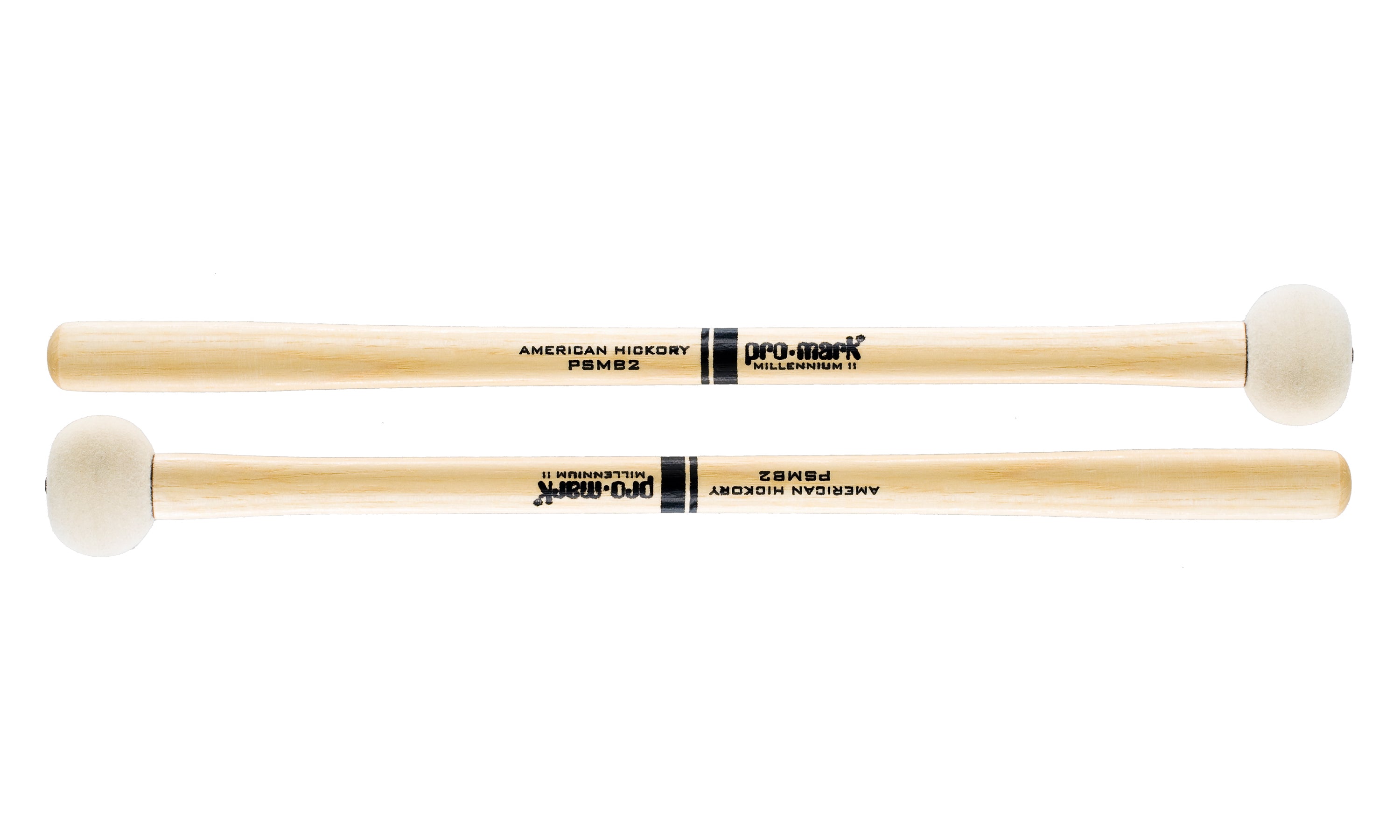 ProMark PSMB2 marching bass drum beaters feature balanced hickory handles with a taper underneath the puffy 1 1/2" felt head. The PSMB2 is best suited for 18-22" drums. The Performer Series Bass Drum mallets are a practical choice for any bass line from beginners to competitive drum corps and college players.