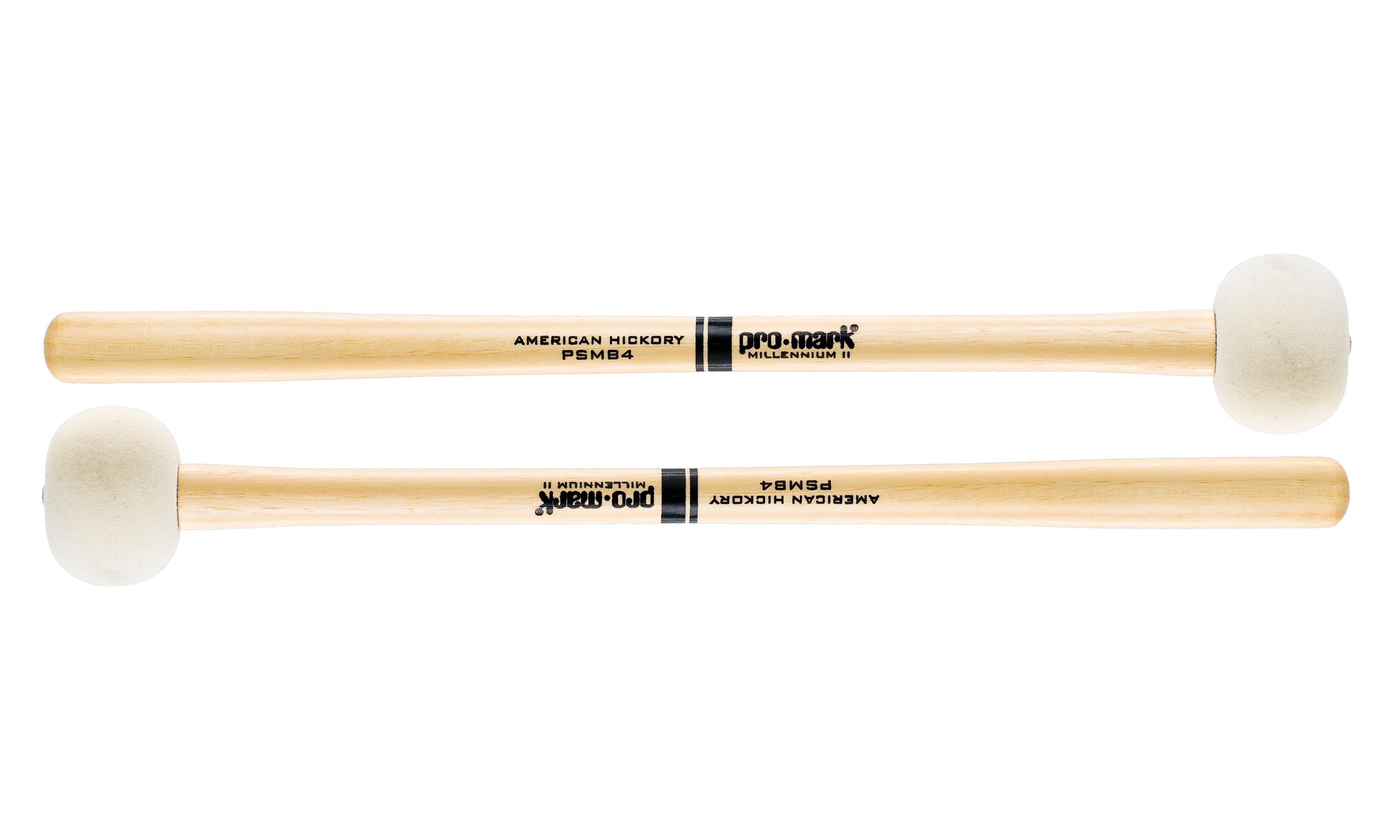 ProMark PSMB4 marching bass drum beaters feature balanced hickory handles with a taper underneath the 1 3/8" felt head. The PSMB4 is best suited for 26-28" drums. The Performer Series Bass Drum mallets are a practical choice for any bass line from beginners to competitive drum corps and college players.